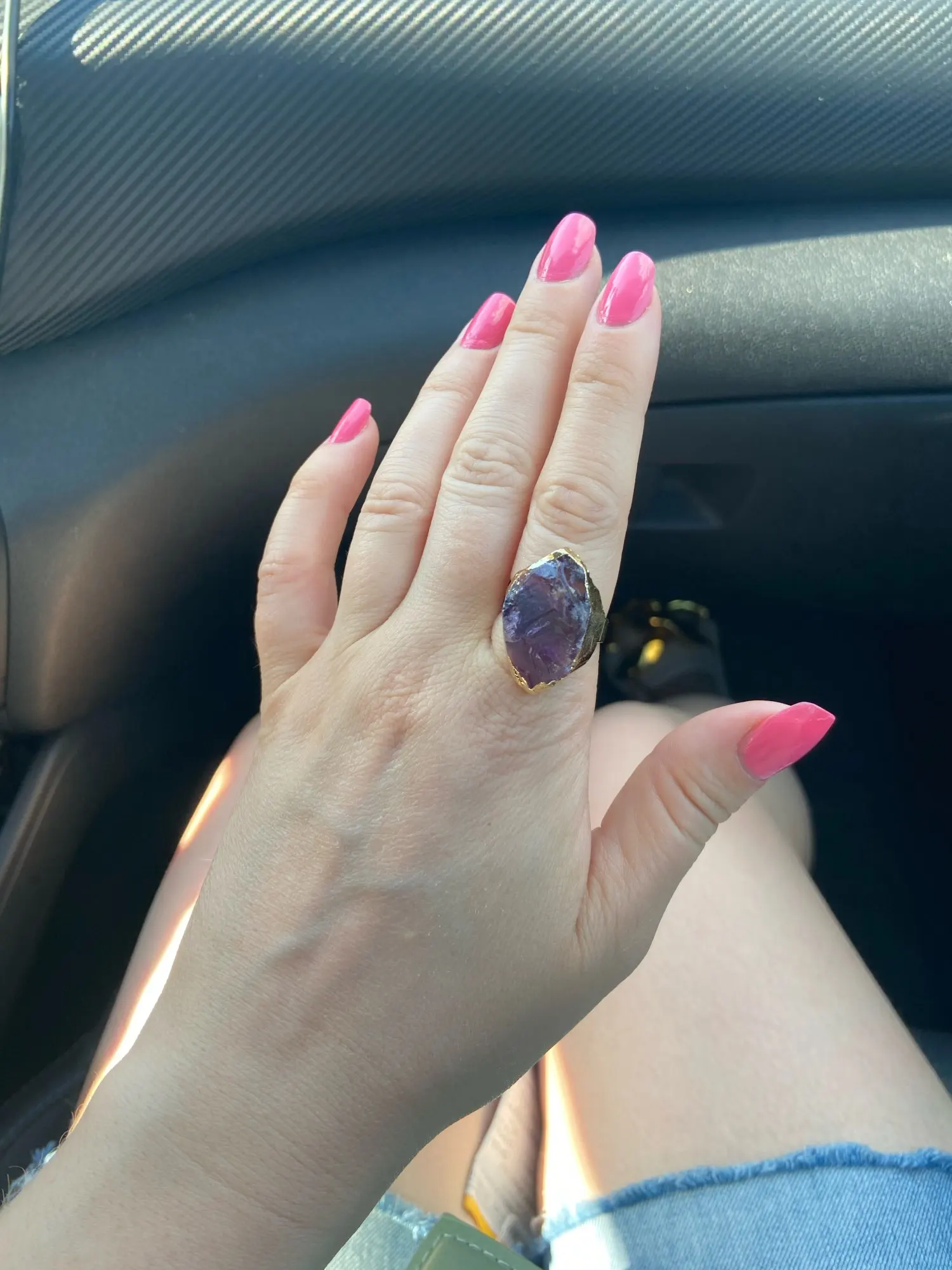 Быстро пришло. Месяц и получила. Камень не крупный, аккуратный. Ободок-кольцо приклеено к камню пистолетом, не уверено, что долго продержится....Брала цитрин , но камень на просвет не имеет желтого оттенка-вроде как бесцветный......