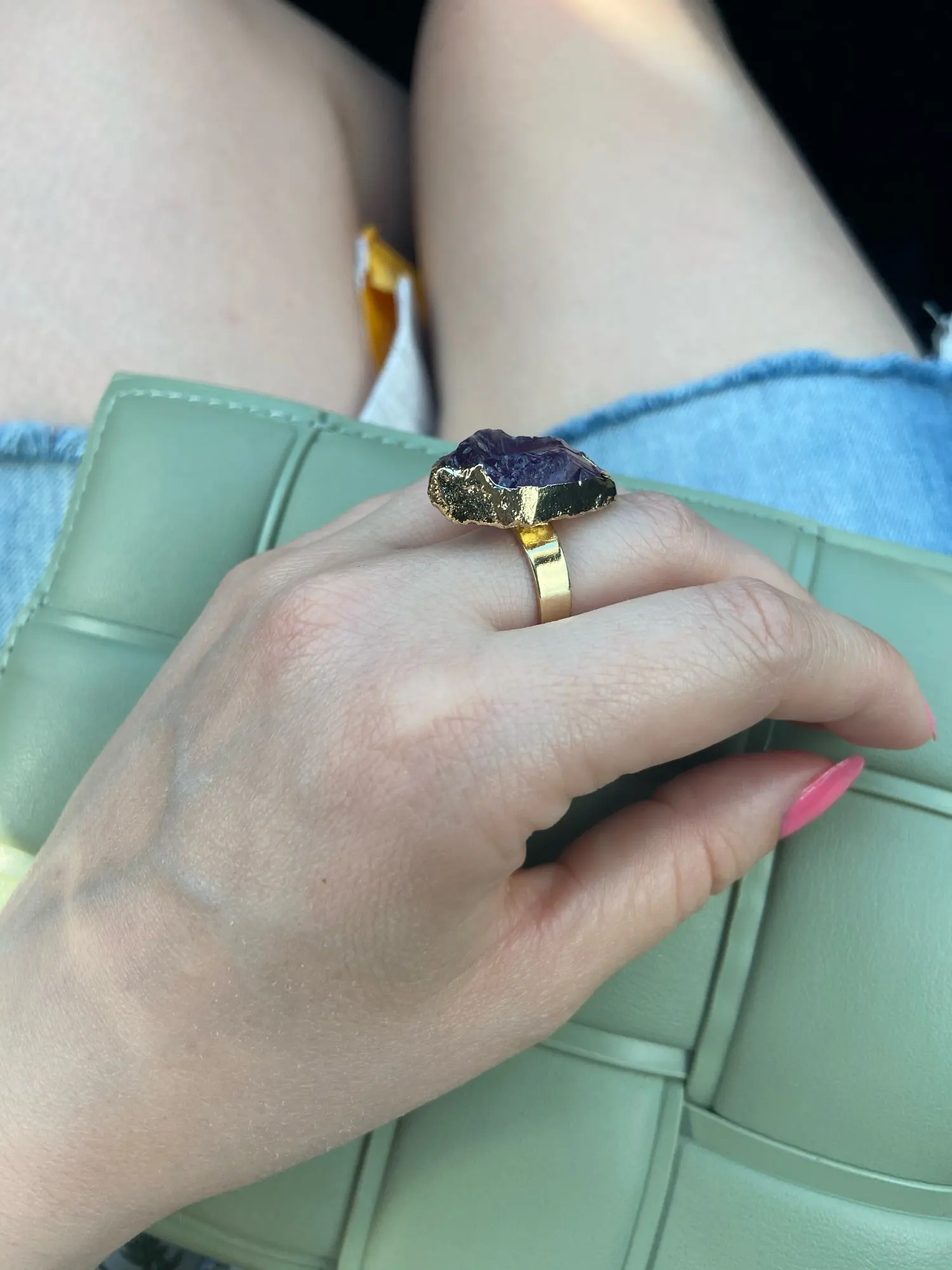 Женское кольцо с аметистом, флюоритом и розовым кристаллом