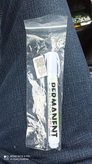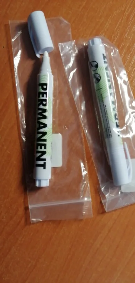 Нормальный маркер. На резине пишет. Цвет не чисто белый. Доставка очень оперативная.