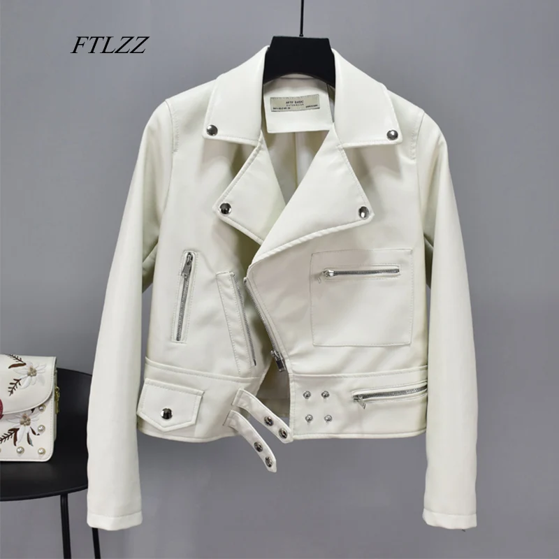 FTLZZ Женская мотоциклетная куртка из искусственной мягкой кожи, с заклепками, на молнии, с отложным воротником, черная, панк, Bf, уличная одежда