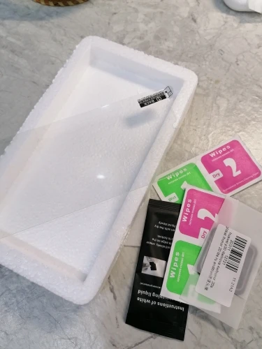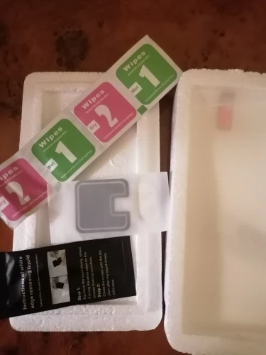 Стекло пришло целым, хорошо упаковано, с салфетками и с жидкостью, чтобы "проклеить" края. По размеру подошли отлично. Пока поставила стекло только на камеру. Немного остаются отпечатки, разводы, но не критично.