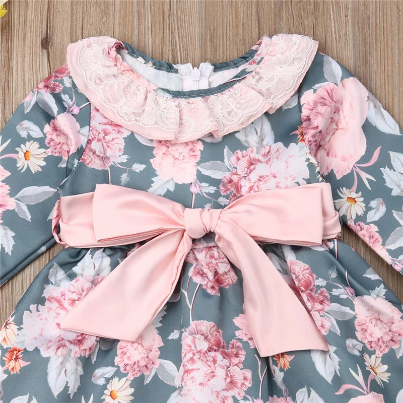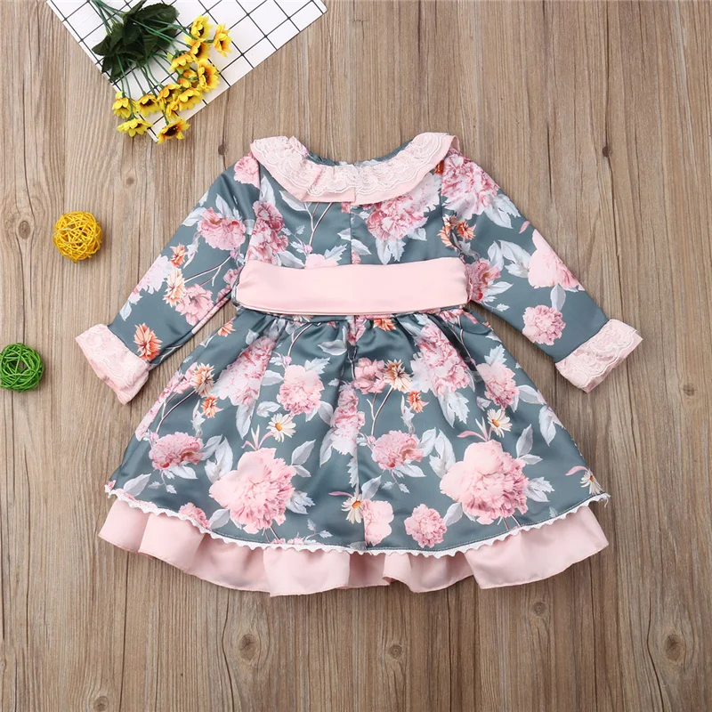 Модное Новое Осеннее Цветочное платье для новорожденных, милая Одежда для младенцев, платье для девочек, одежда для принцессы, вечерние рождественские платья