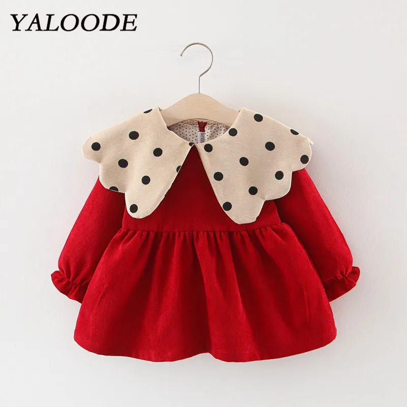 YALOODE новое платье для маленьких девочек, вельветовое платье с длинным рукавом в горошек для маленьких принцесс, платье на день рождения, платье для маленьких девочек