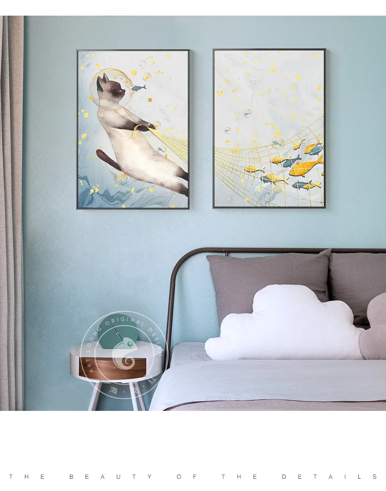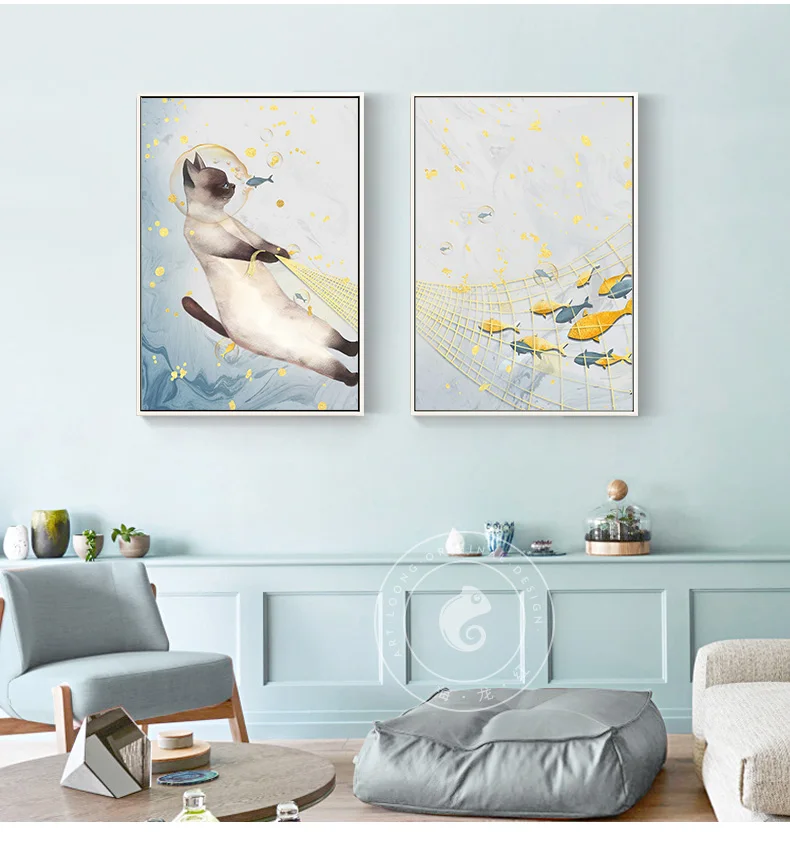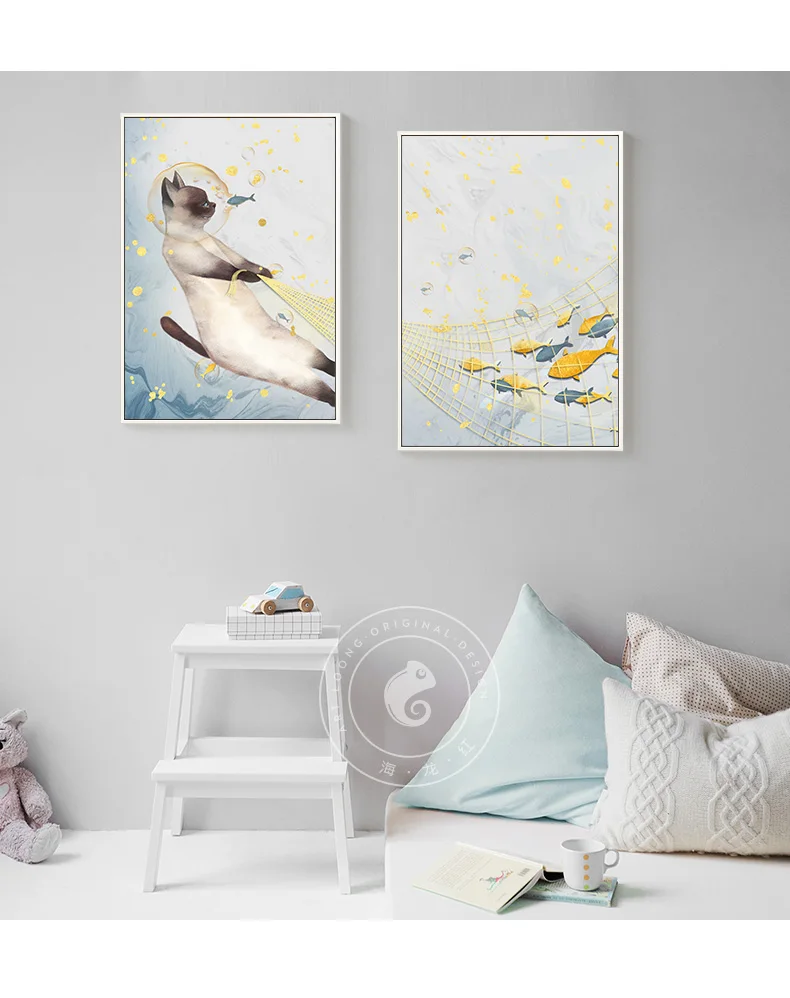 Скандинавские акварельные кошки, рыбалка, холст, Постер и печать, настенная живопись, минималистичные картинки для гостиной, спальни, детской комнаты