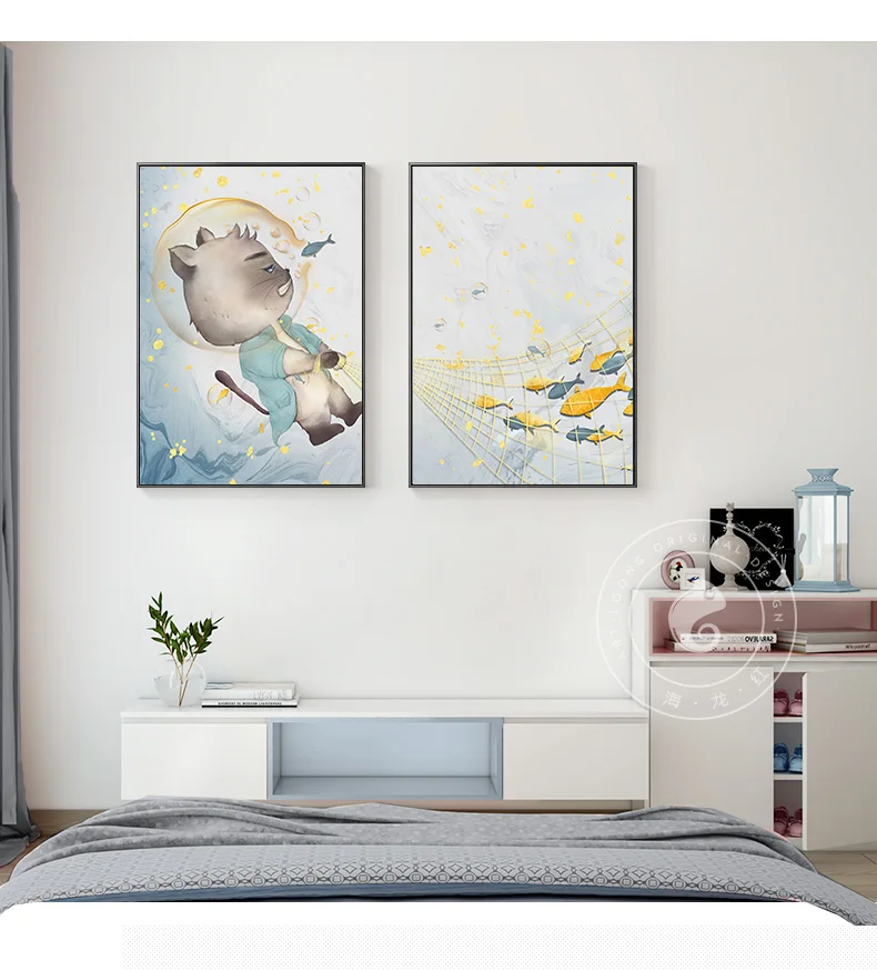 С рисунком кота из мультфильма Плакаты и печать холст картины маслом настенные картины для Гостиная Детские Спальня детская Куадрос домашний декор