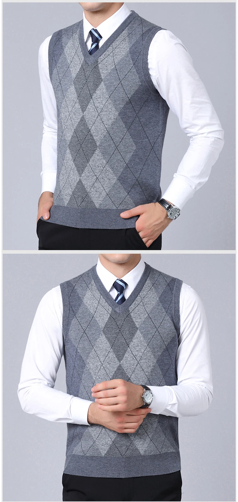 6% шерсть, модный свитер без рукавов для мужчин, кардиган с v-образ...