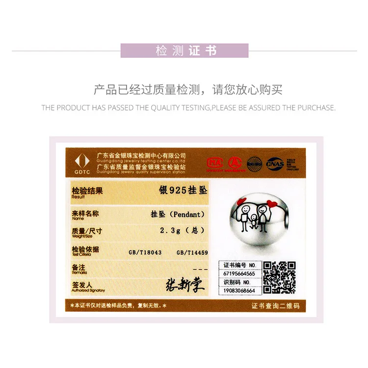 Тип сертификатаCCGTC (испытательный центр ювелирных изделий федерации промышленности и торговли)