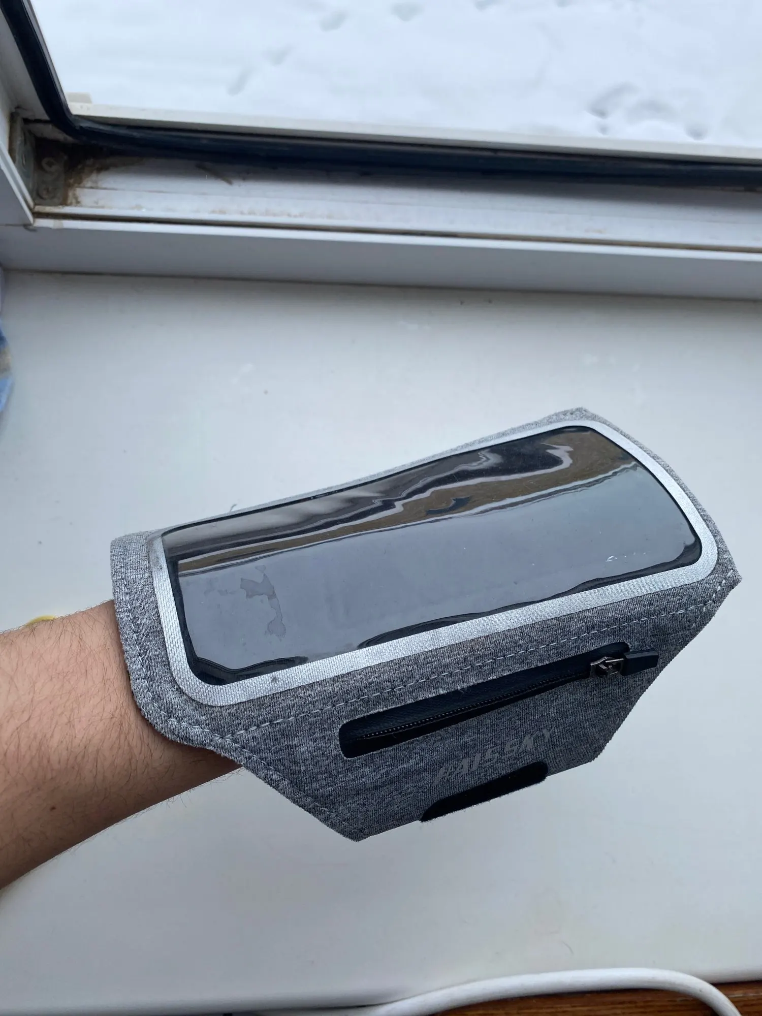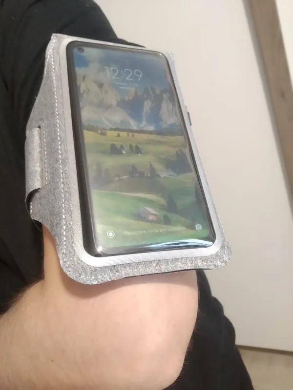 Нормальный чехол нарукавник. Выглядит эстетично, сидит удобно, материал на ощупь приятный. У меня рука средняя по обхвату, не дрищ, но и не кач. - подошло нормально. Но если бицуха будет раскачана - будет мало. На фото Xiaomi Redmi note 9 - отлично влез, сенсор работает через пленку. Пришло вместе с посылками от других продавцов за неделю.