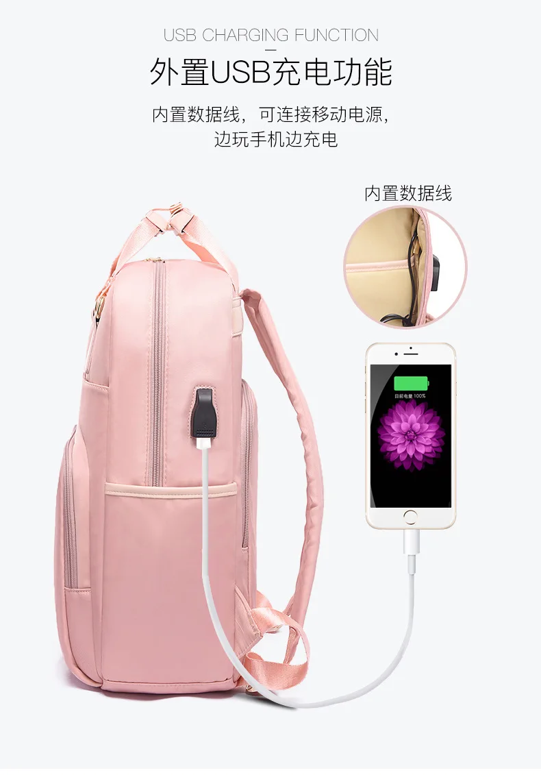 Женский водонепроницаемый рюкзак из ткани Оксфорд с USB-зарядкой