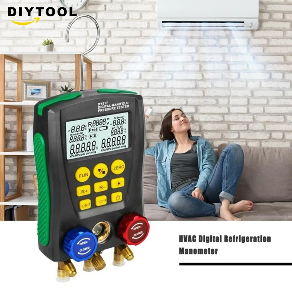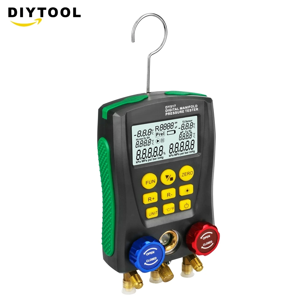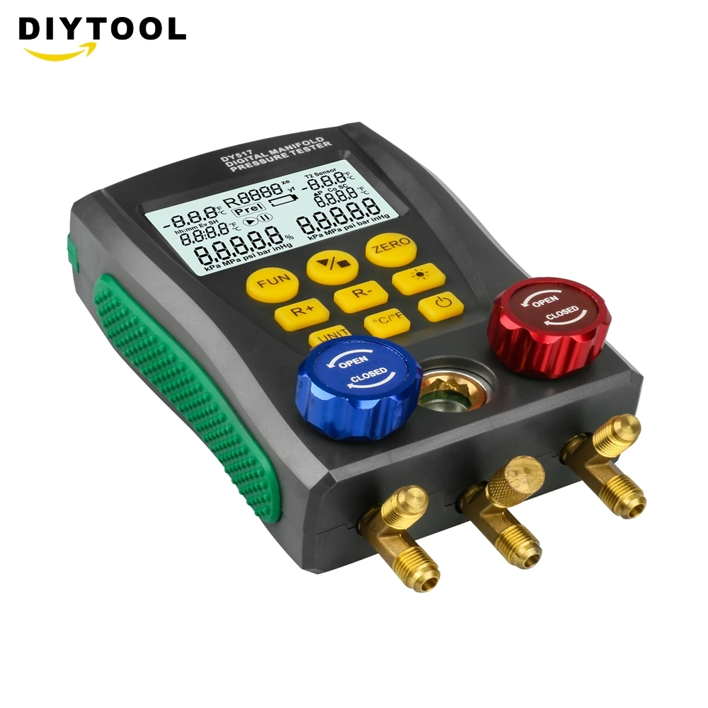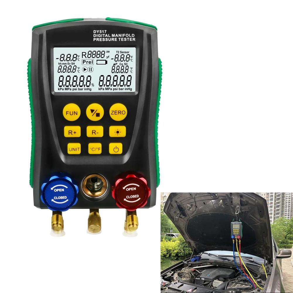 ЕС/EN61010-1 стандарты безопасности для проектирования и производства.1) давление, измеряемое цифровым манометром коллектора, является манометром.2) Диапазон измерения давления от-101 кПа до 6 МПа (от-0,1 бар до 60 бар).3) Предельное давление 10 МПа (100 бар).4) Максимальное рабочее давление стандартного шланга составляет 600 PSI (приблизительно 4,13 МПа, 41,3 бар). Предельное давление составляет 3000 PSI приблизительно 20,68 МПа, 206,8 бар).5) проверьте номинальное значение давления испытанного оборудования перед тестированием. Не используйте его, если он превышает диапазон инструмента. Также для DY517A, если упакованоШланги не соответствуют требованиям к давлению, для тестирования можно использовать подходящие замены.6) не используйте и не храните прибор при высокой температуре, повышенной влажности, легковоспламеняющихся, взрывоопасных и сильных электромагнитных полях.7) Пожалуйста, не меняйте внутреннюю цепь инструмента, чтобы избежать каких-либо повреждений инструмента или опасности.8) Пожалуйста, носите квалифицированное защитное оборудование для защиты пользователя во время тестирования.9) Используйте инструмент в хорошо проветриваемой среде, чтобы предотвратить вдыхание токсичных газов.Характеристики изделия:Тест давления: манометрЕдиница измерения давления: кПа; МПа; Бар; inHg; PSI.Диапазон измерения давления: 0 кПа-6000 кПаРазрешение испытания под давлением: 1 кПаТочность измерения давления: +/-0,5%(FS)+ 5dgtПредел перегрузки давления: 10000 кПа (10 МПа; 100 бар;)Вакуумный тест: относительный вакуумВакуумный испытательный блок: кПа; МПа; Бар; inHg; PSI.Диапазон вакуумных испытаний: -101 кПа-0 кПаРазрешение вакуумного теста: 1 кПаЕдиница измерения температуры: °C (Цельсия), °F (по Фаренгейту)Диапазон температурных испытаний: -40 °C-150 °C (-40 °F-302 °F)Разрешение при измерении температуры:0,1 °C (-40 °C-99,9 °C), 1 °C (100 °C-150 °C)0,1 °F (-40 °F-99,9 °F), 1 °F (100 °F-302 °F)Точность измерения температуры: +/-0,5 °C + 2dgt +/-0,9 °F + 2dgtВстроенные 89 видов хладагента NIST: согласно американскому стандарту NISTПитание: 4X1,5 в (размер AA / LR6) батареи не включеныРазмеры: 170*110*50 ммВес: 950 гВес посылка: 1,0 кг (2,20 фунта)Размер посылка: 20 см x 10 см x 5 см (7,87 дюйма x 3,94 дюйма x 1,97 дюйма)Комплектация:1x цифровой манометр холодильного коллектора (аккумулятор не входит в комплект)1x Руководство пользователя (на английском языке)