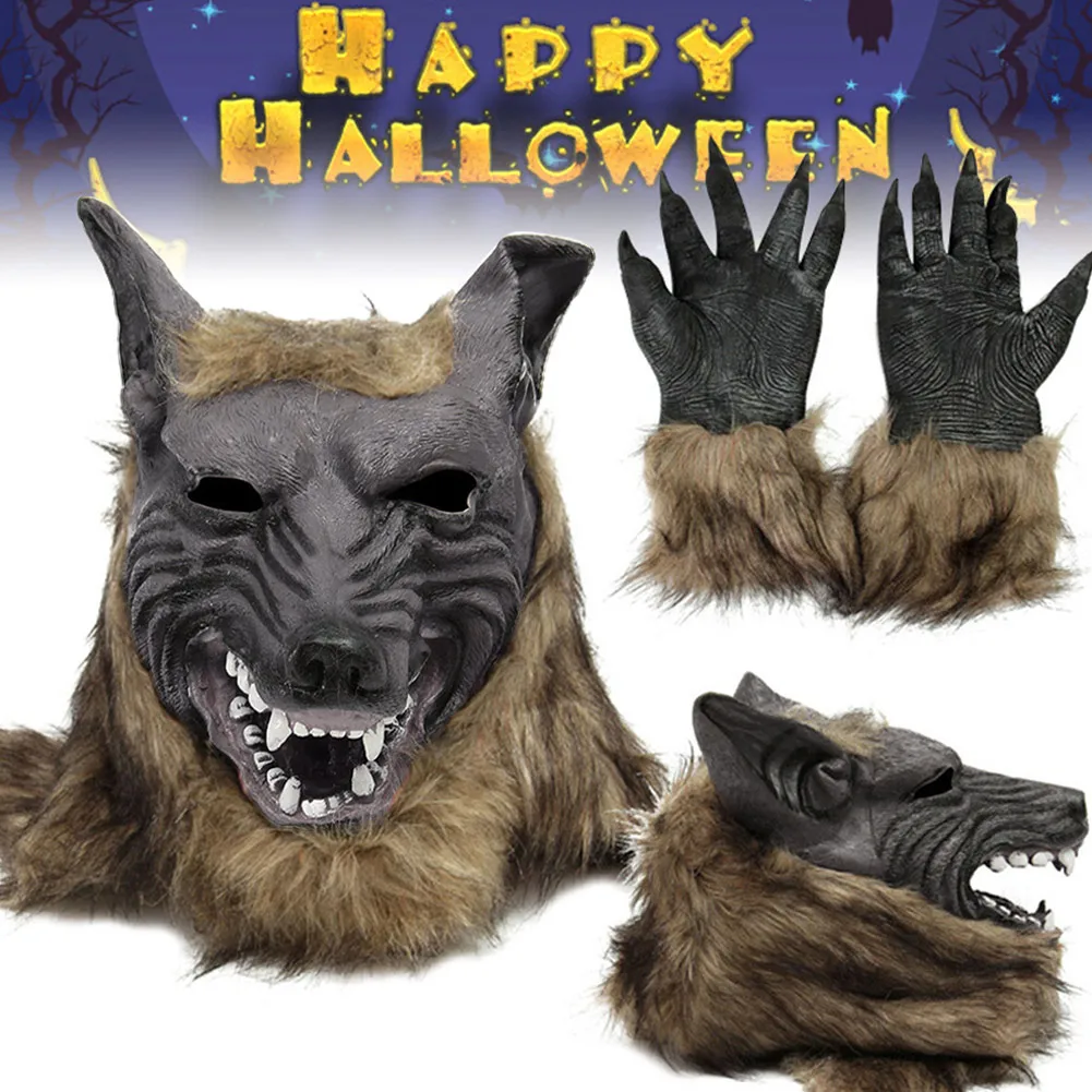 Латексная резиновая маска для волос в виде головы волка на Хэллоуин, женский костюм, страшное украшение для вечерние, детские игрушки