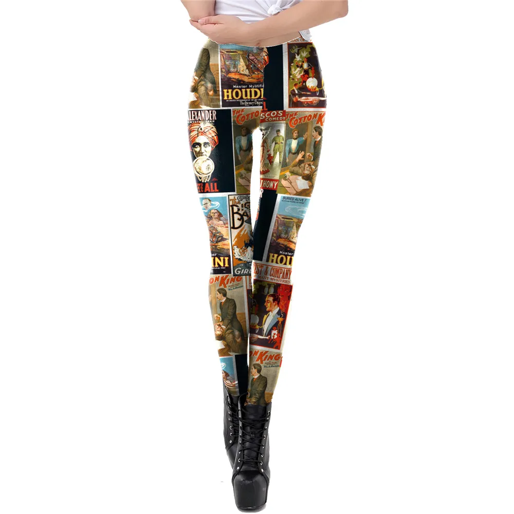 Женские винтажные леггинсы с принтом, для занятий фитнесом