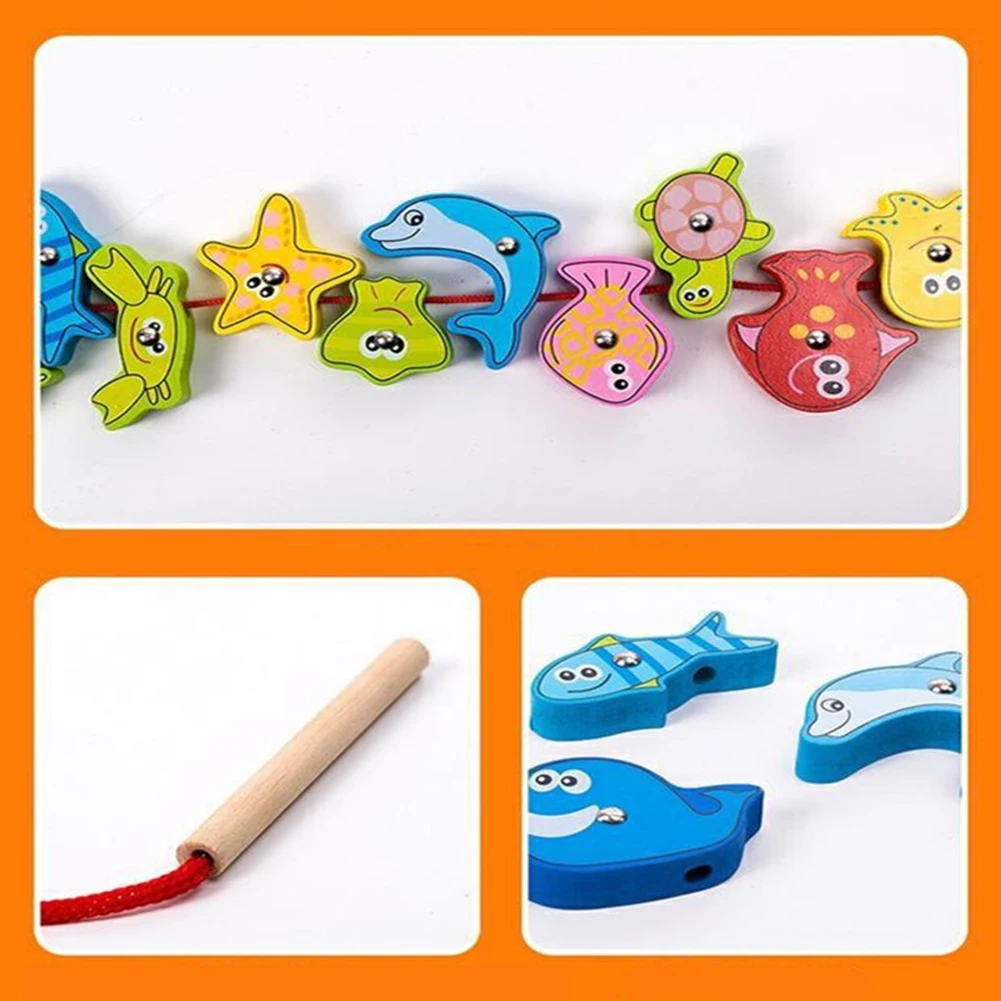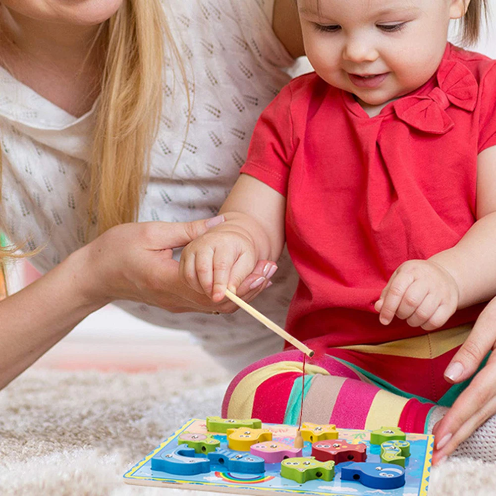 Детские деревянные Мультяшные Магнитные Головоломки для рыбалки, интерактивная игра, развивающая игрушка для детей