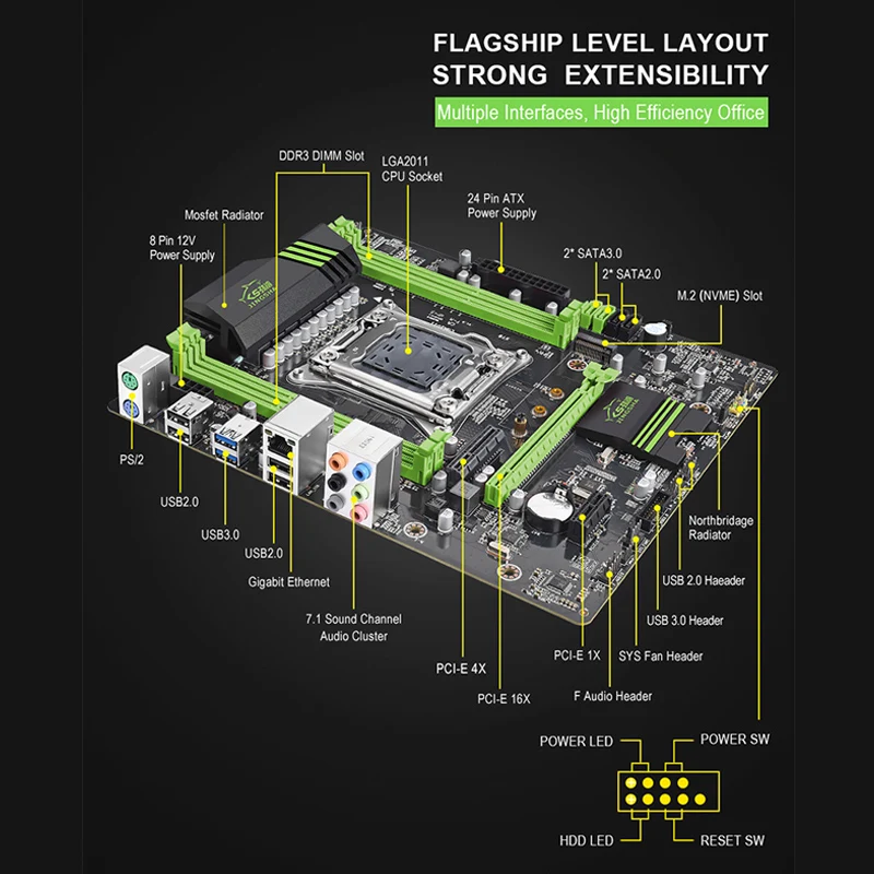 2 * PCI-E 16X 3,0, поддержка CrossFire4 * слот DDR3 RAM, поддержка Quad ArchitectureДвухзначный дисплей отладкиБортовой высокоскоростной интерфейс NVMe M.2