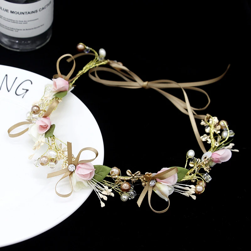 Свадебные аксессуары для волос женские хрустальные жемчужные свадебные головные уборы атласная лента ювелирные изделия для тиары для невесты короны ободки