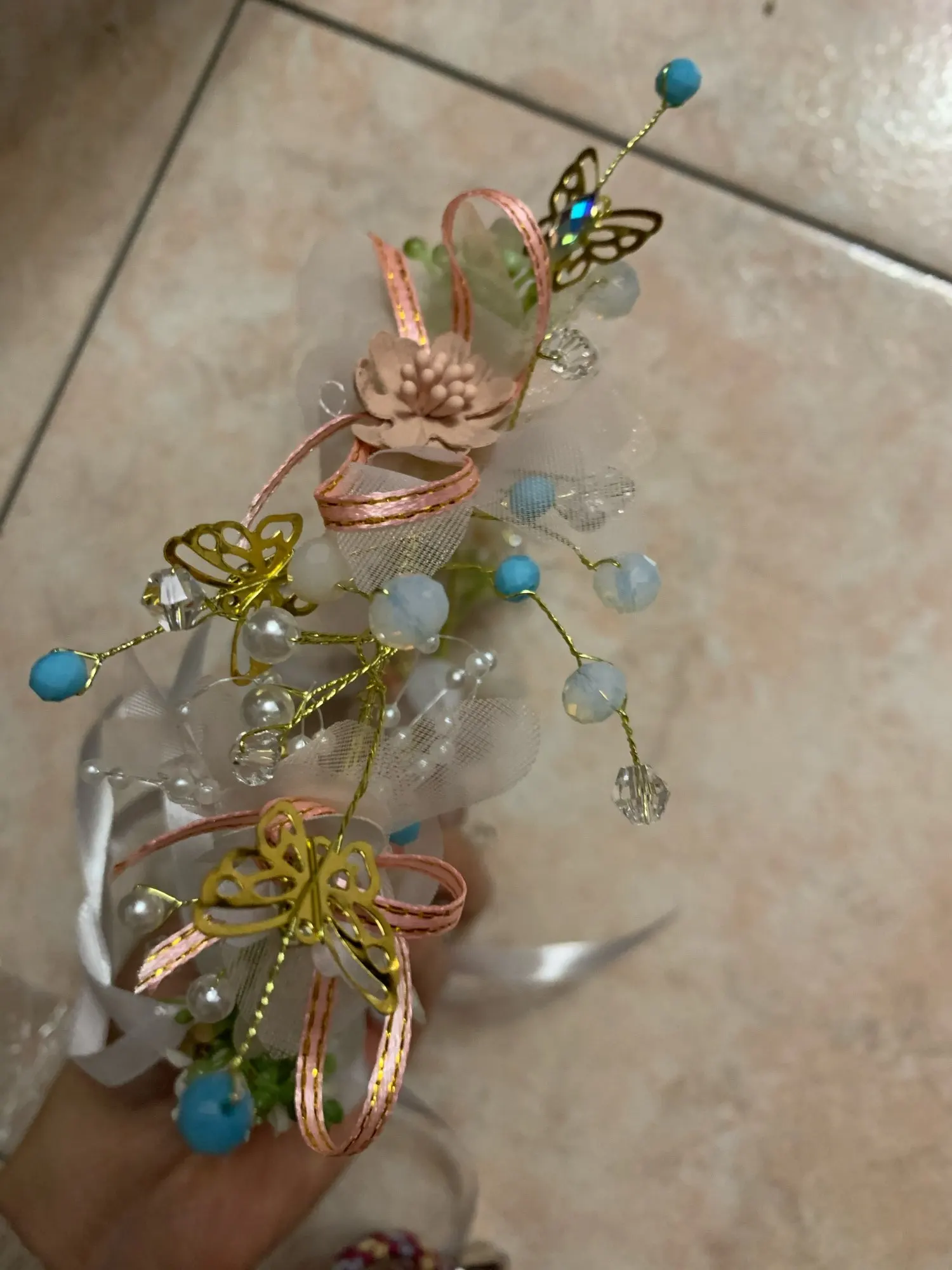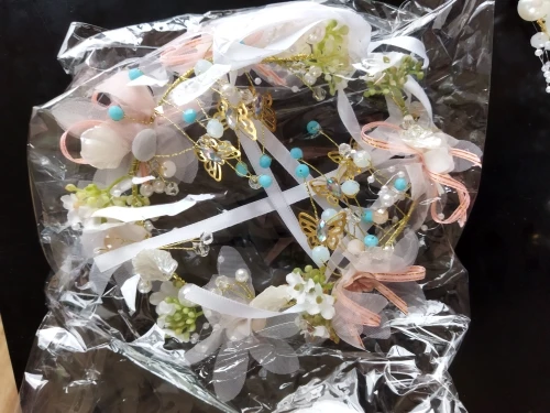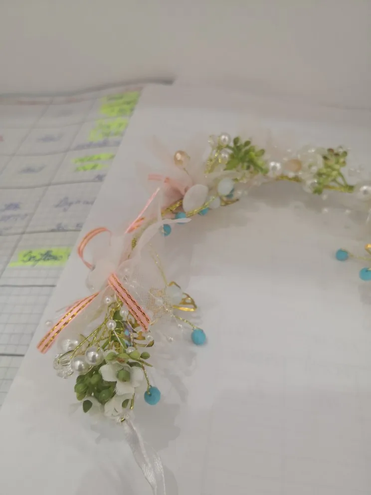 Красивая веточка в прическу, немного неряшливые тканые цветочки, но за эту цену простительно. На фото точно будут смотреться прекрасно. Аккуратно упаковано, без повреждений пришло