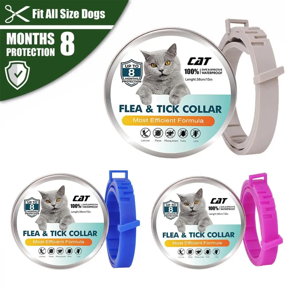 Ошейник для собак и кошек, 8 месяцев, ошейник против блох и клещей, защита от фотокомаров, силиконовое искусство