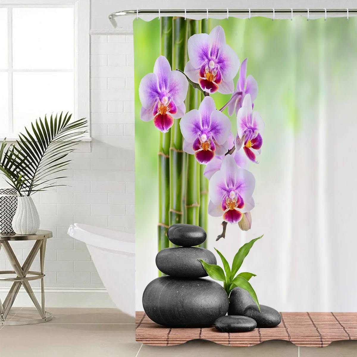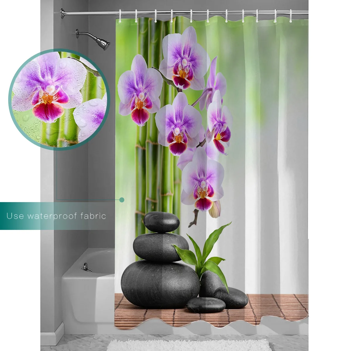 Бамбук, Орхидея Zen занавеска для душа, водонепроницаемая занавеска для душа в ванную комнату с крючком, аксессуары для ванной комнаты