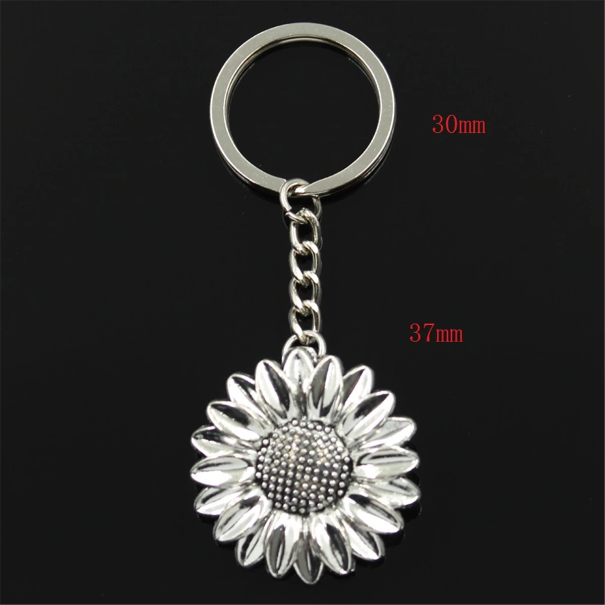 Модный брелок 37x37 мм подсолнух цветок подвески из серебра DIY мужские ювелирные изделия автомобильный брелок кольцо держатель сувенир для подарка