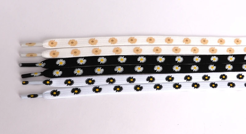 1 пара, шнурки с маленькими маргаритками, с мультяшным принтом, модные женские и мужские шнурки для обуви, высокие холщовые шнурки для кроссовок, шнурки на плоской подошве