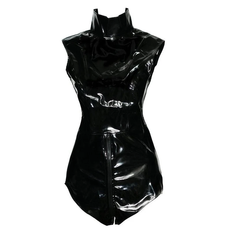 Женское боди из ПВХ, костюм, кожаное эротическое нижнее белье, платье на молнии с открытой промежностью для косплея, карнавала, яркое вечернее платье
