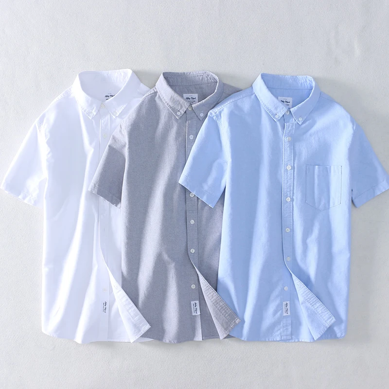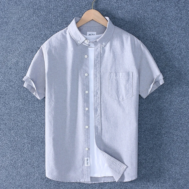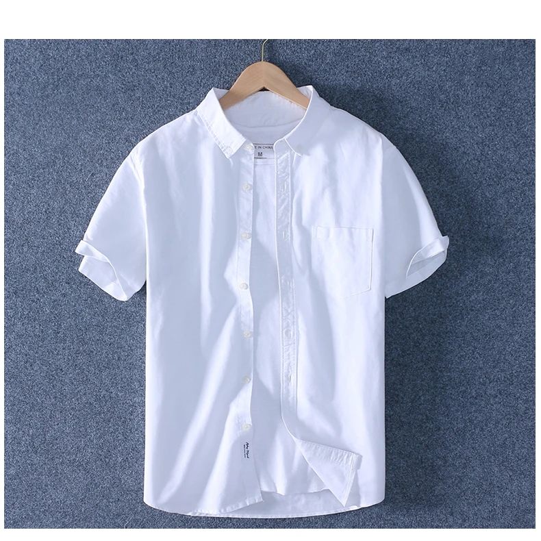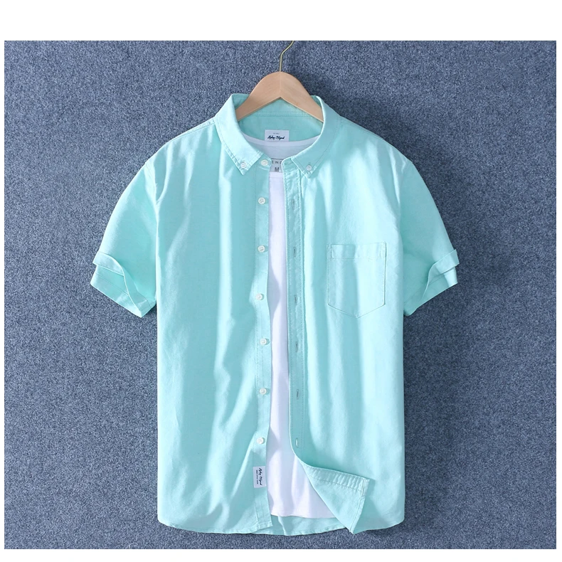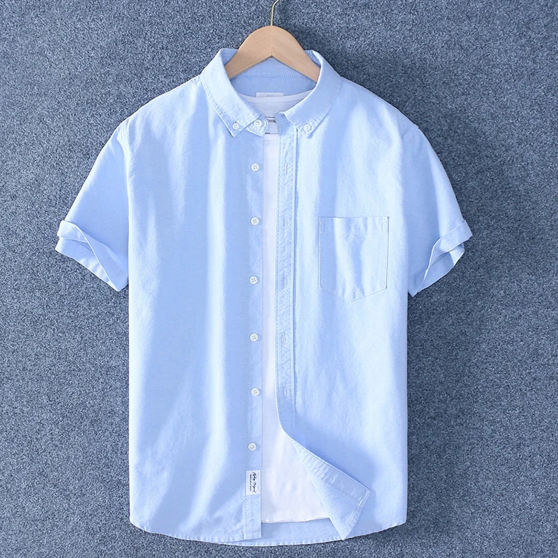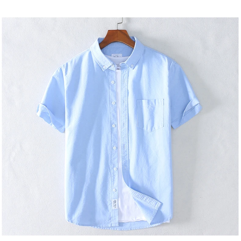 Рубашка Schinteon мужская с отложным воротником, повседневная Облегающая рубашка из 100% хлопка, Оксфорд, с короткими рукавами, лето