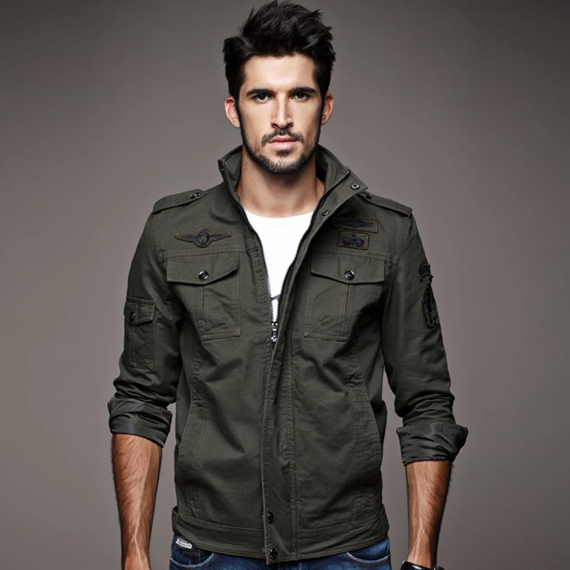 Куртка в стиле милитари для мужчин; Сезон весна-осень; Ветровка пил...
