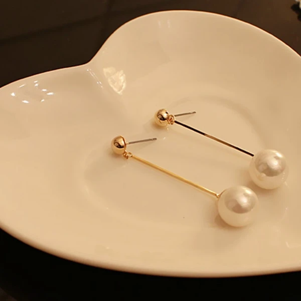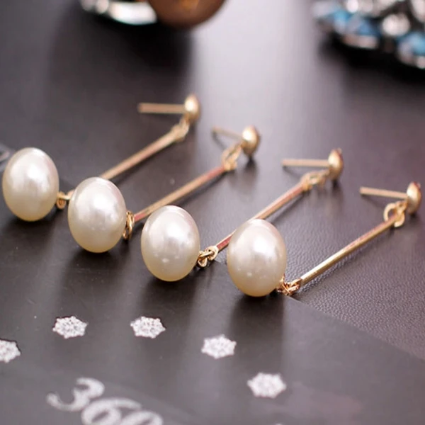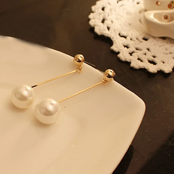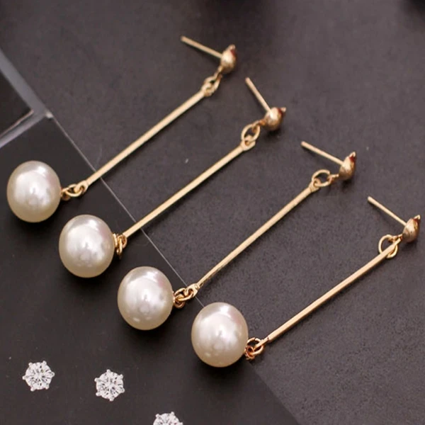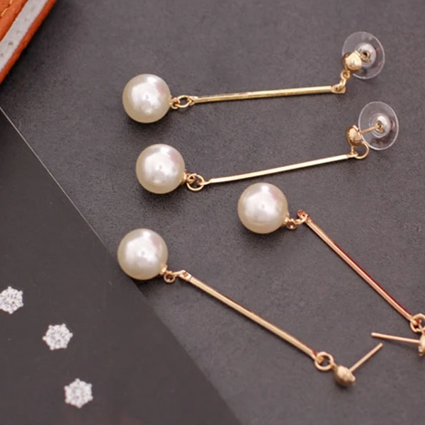 Серьги-подвески женские, с искусственным жемчугом, золотистые, металлические