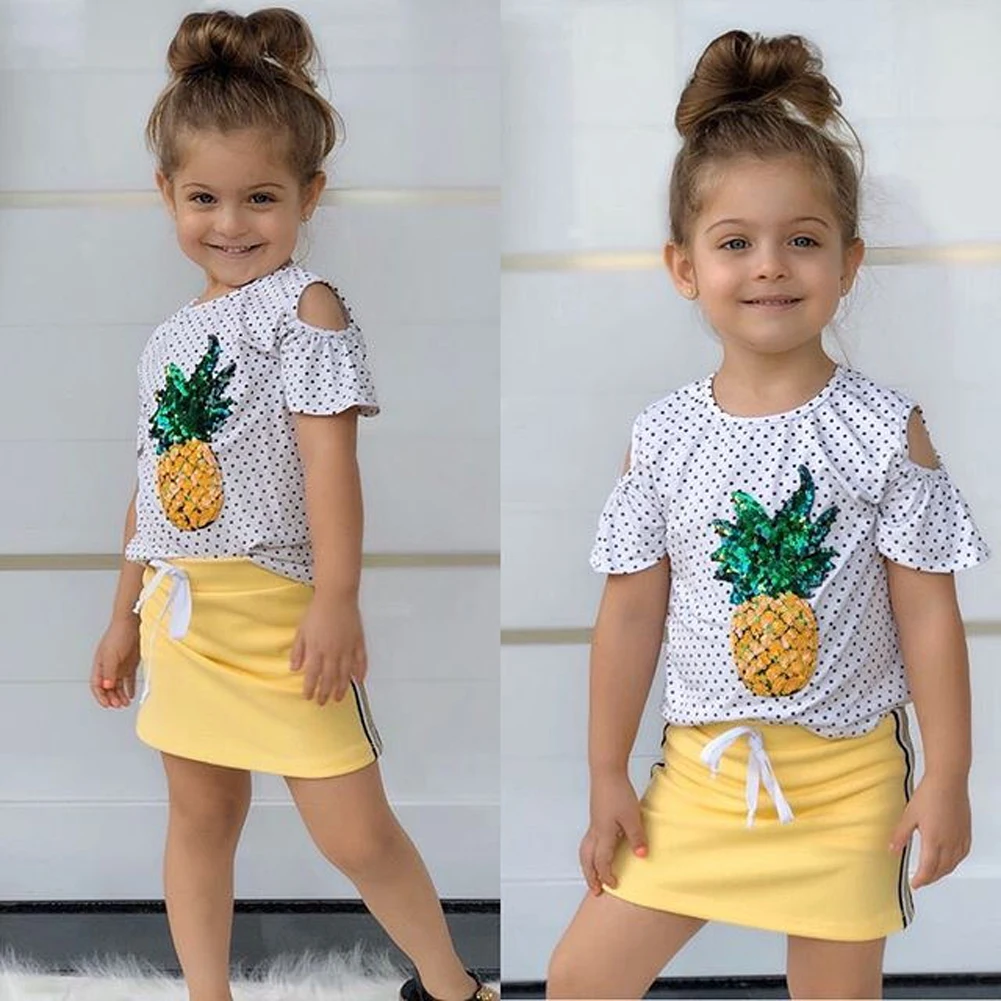 Свяжитесь с нами для малышей для маленьких девочек с блестками, с рисунком ананаса футболки мини-юбка платье, летняя одежда для мальчиков комплект От 1 до 6 лет