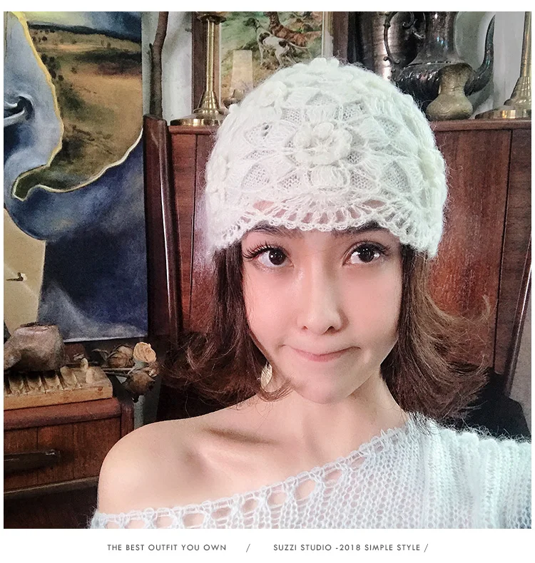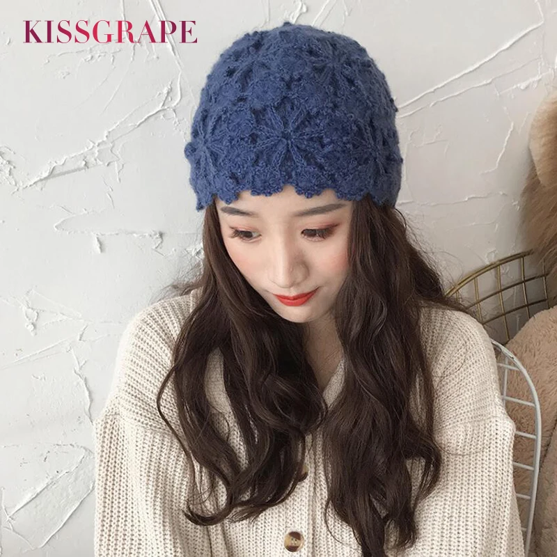 Новинка 2021, осенняя двухслойная женская вязаная шапка, шапка ручной работы, женская элегантная зимняя теплая вязаная крючком шапка с цветочным рисунком, мягкая шапка
