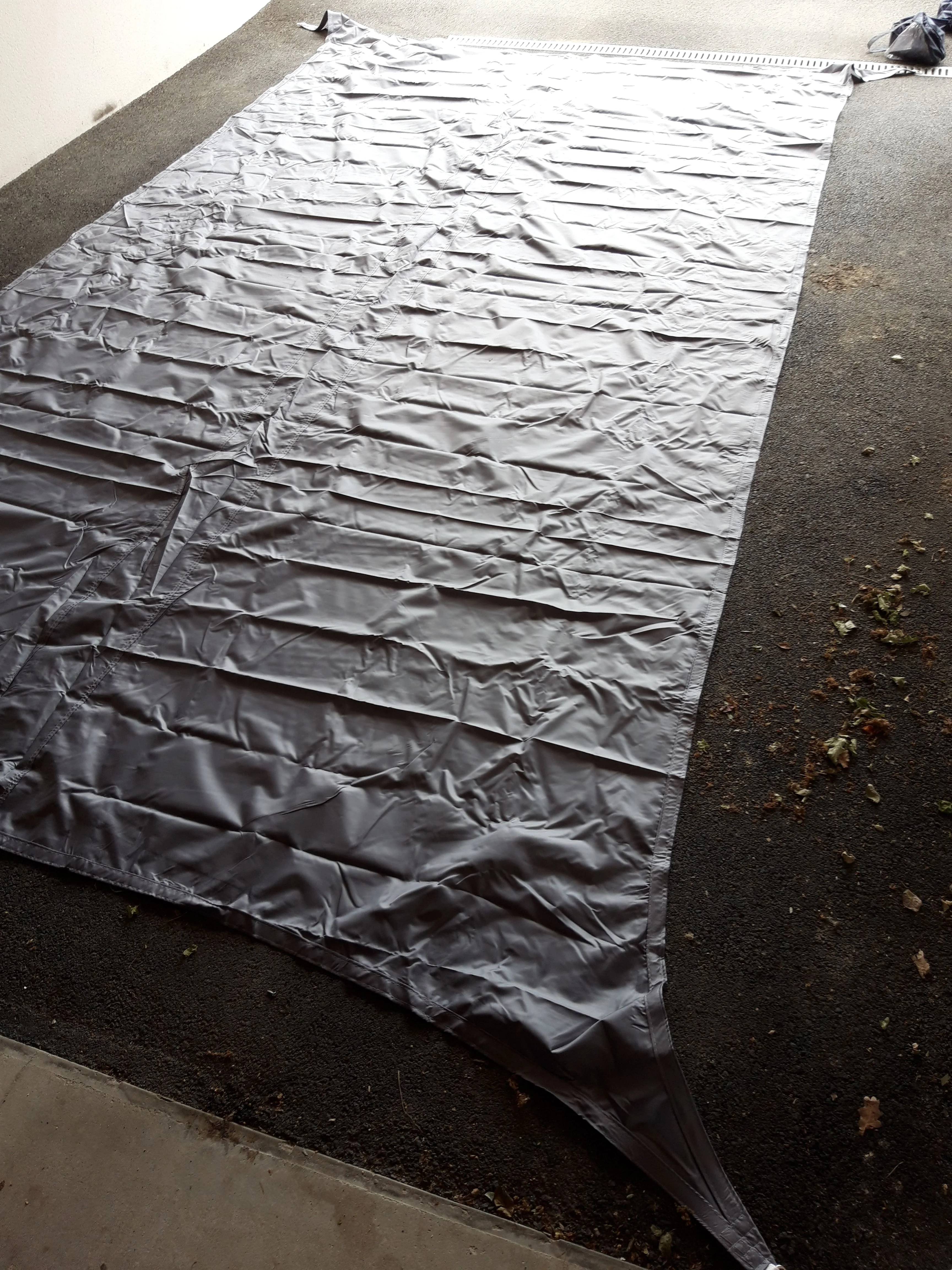 Очень легкая ткань. Тень очень низкая в центральной части. Это было намного дешевле треугольника, который покрывает что-то похожее. Это пришло быстро.