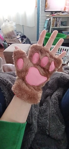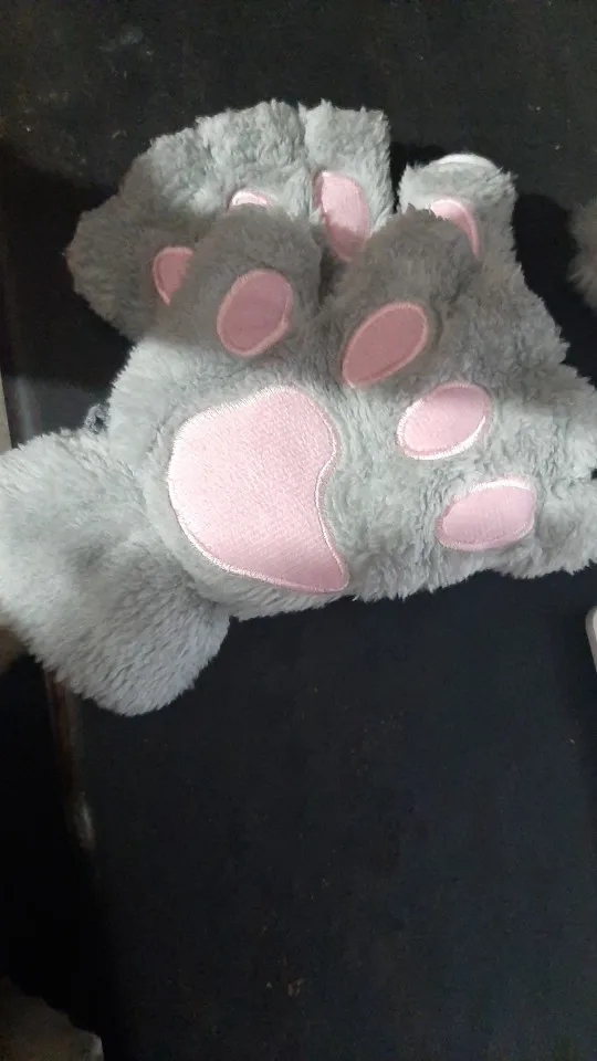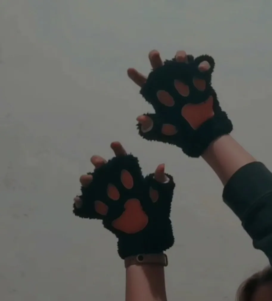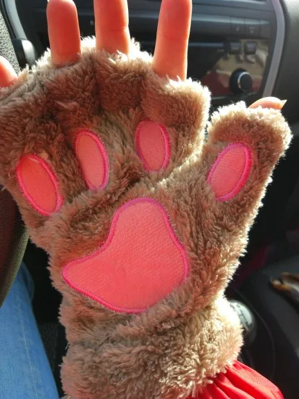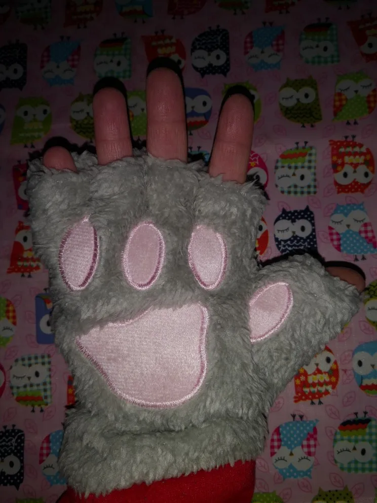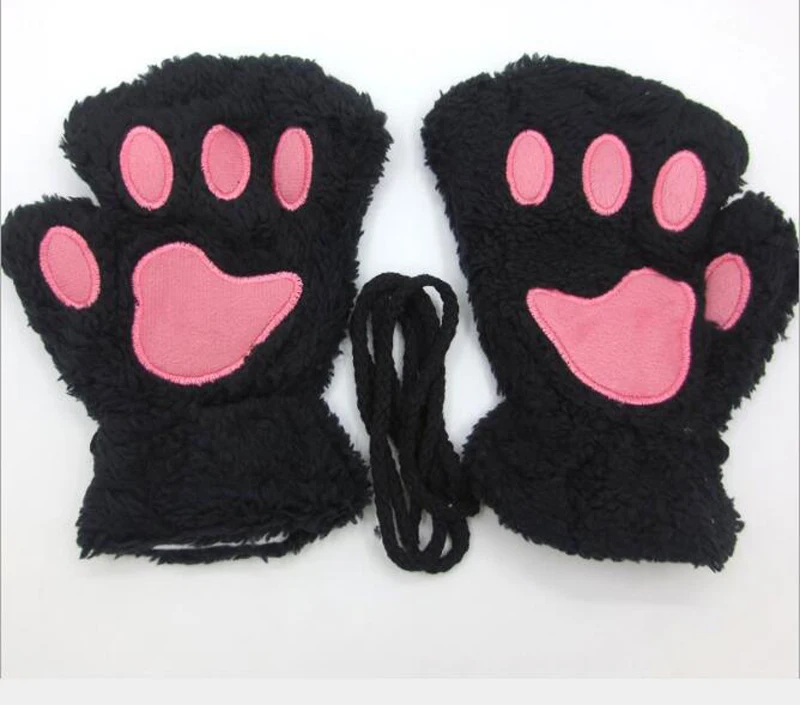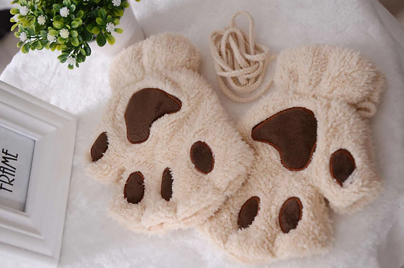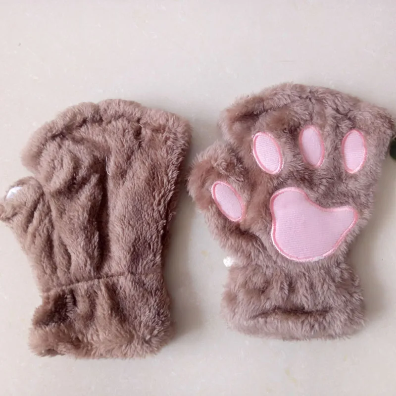 Варежки женские, плюшевые, короткие, без пальцев, кошачья лапа с когтями