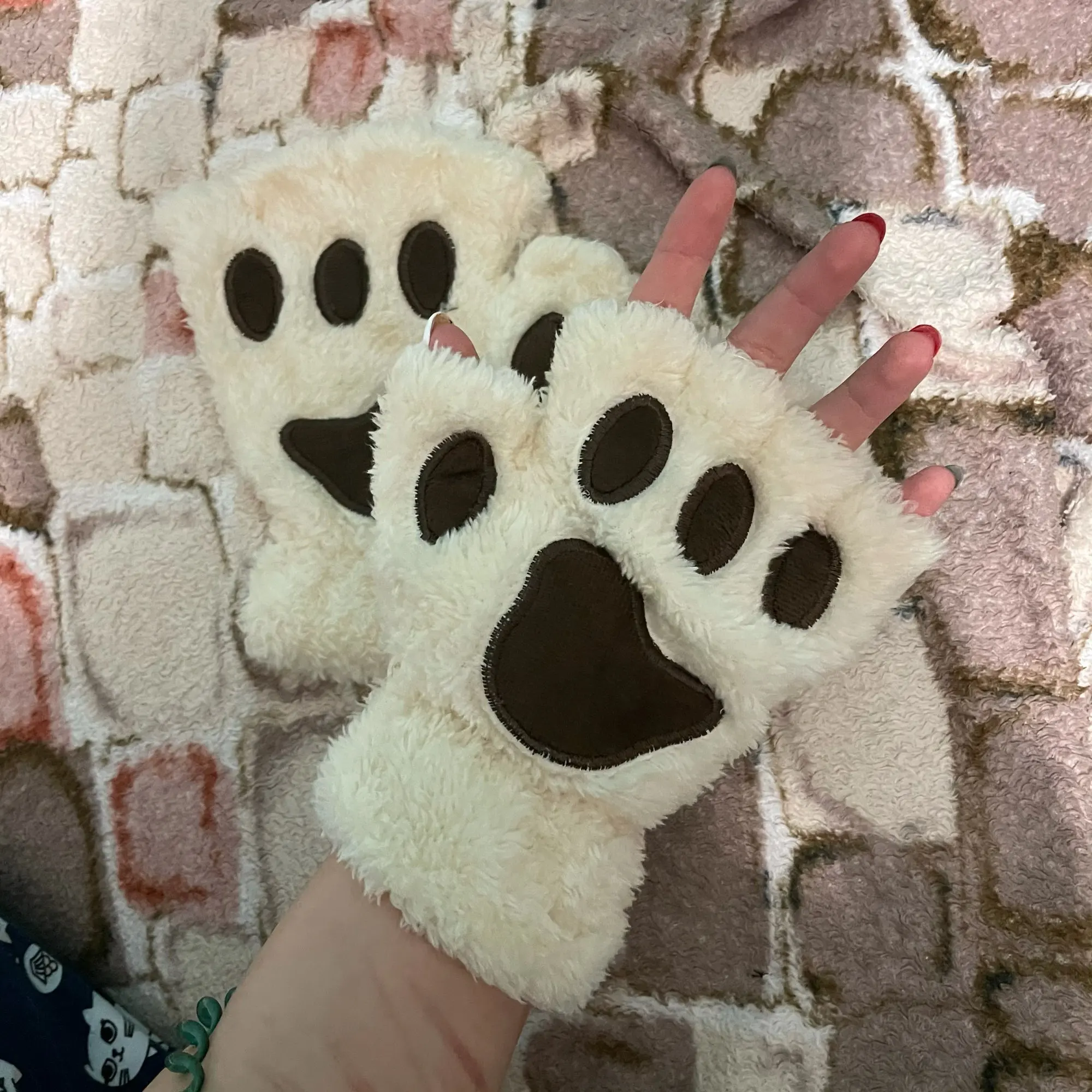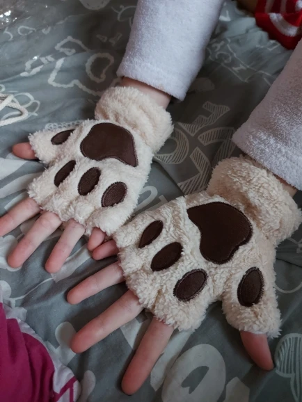 Очень милые и мягкие перчаточки! Качество супер, в комплекте есть веревочка, чтобы связать их. У меня очень маленькие руки и размер мне подошел, с рук не сползают. Точно буду ещё заказывать