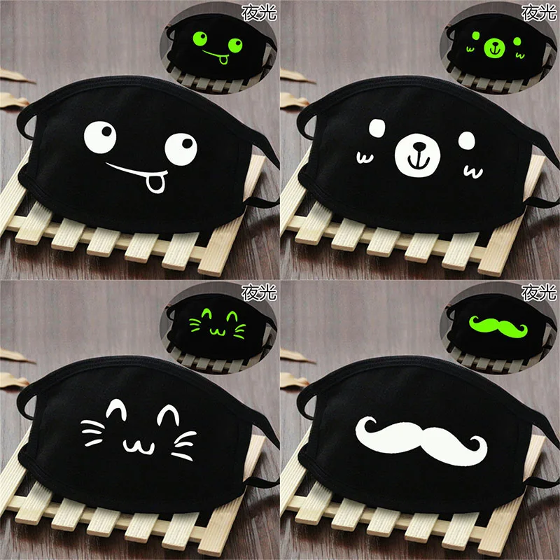 Маска хлопковая черная светящаяся, с защитой от пыли, PM2.5, 36 видов, 1 шт.