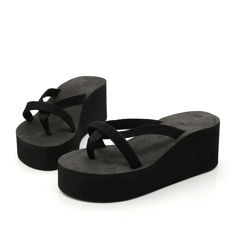 Женские босоножки на платформе; босоножки на высоком каблуке; Летняя женская обувь; модные шлепанцы; пляжные вьетнамки; однотонные шлепанцы; 2019