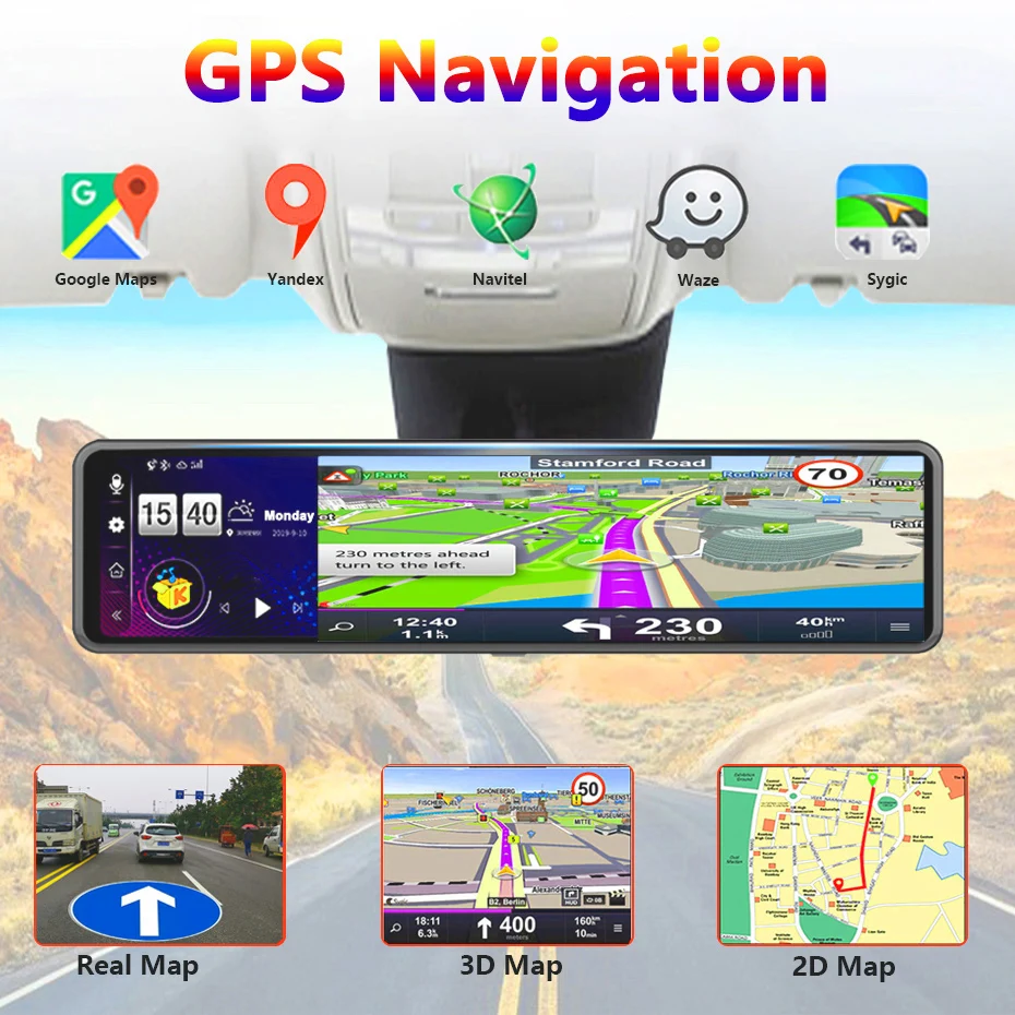 Загрузите ваш любимый GPS во внутреннюю память, этот Видеорегистратор обеспечивает лучший опыт независимо от места назначения. Кроме того, это сетевая функция 3G/4G, помогает dvr быстрее и плавно получать онлайн gps-навигацию. Наша машина Android 8.1 система, вы также можете скачать Waze / iGO/ Yandex GPS карты из Google Play Store самостоятельно.
