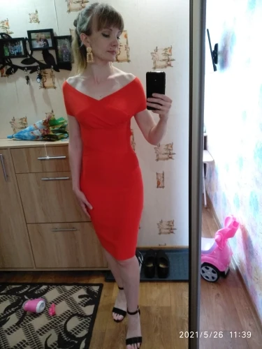 Заказала размер платья по отзывам - L. Платье очень обтягивает. Подошло, но очень туго рукам. Возможно, нужно было на 1 размер больше. Отверстия для рук, мне кажется, маленькие. Как будто связан - не удобно. А так качество ткани хорошее, цвет яркий.