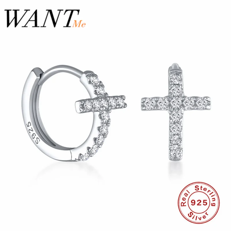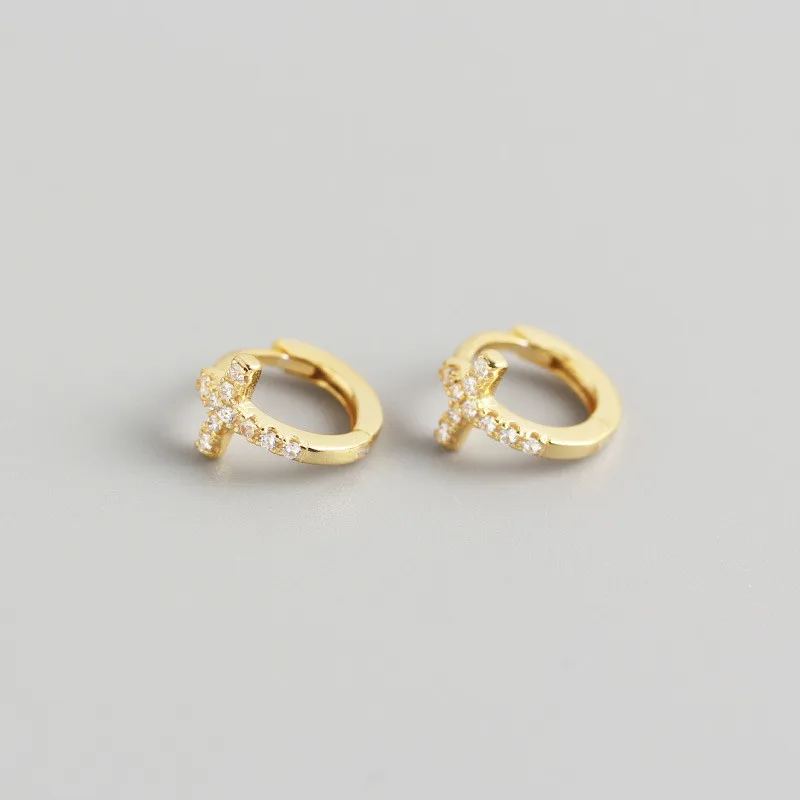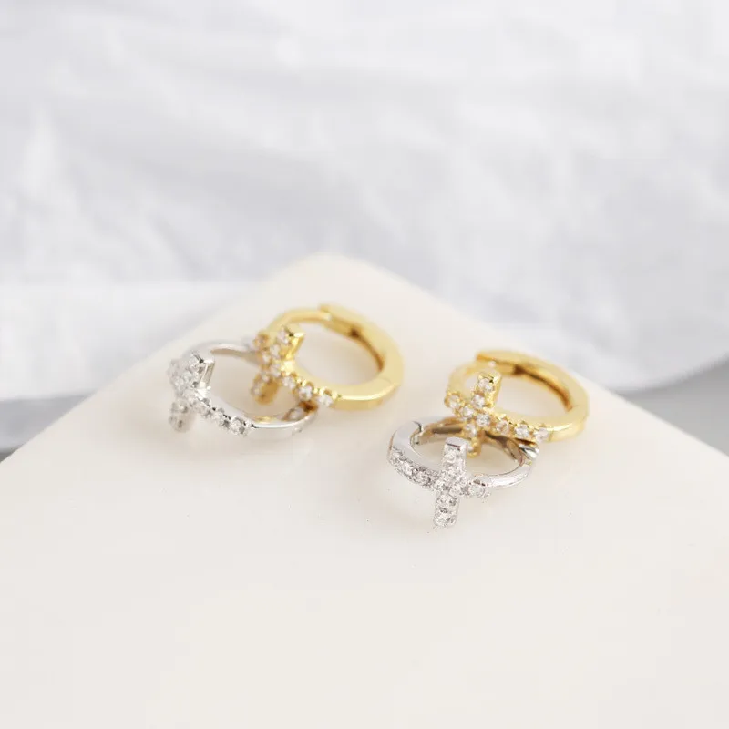 Женские серьги-гвоздики из серебра 925 пробы с крестом