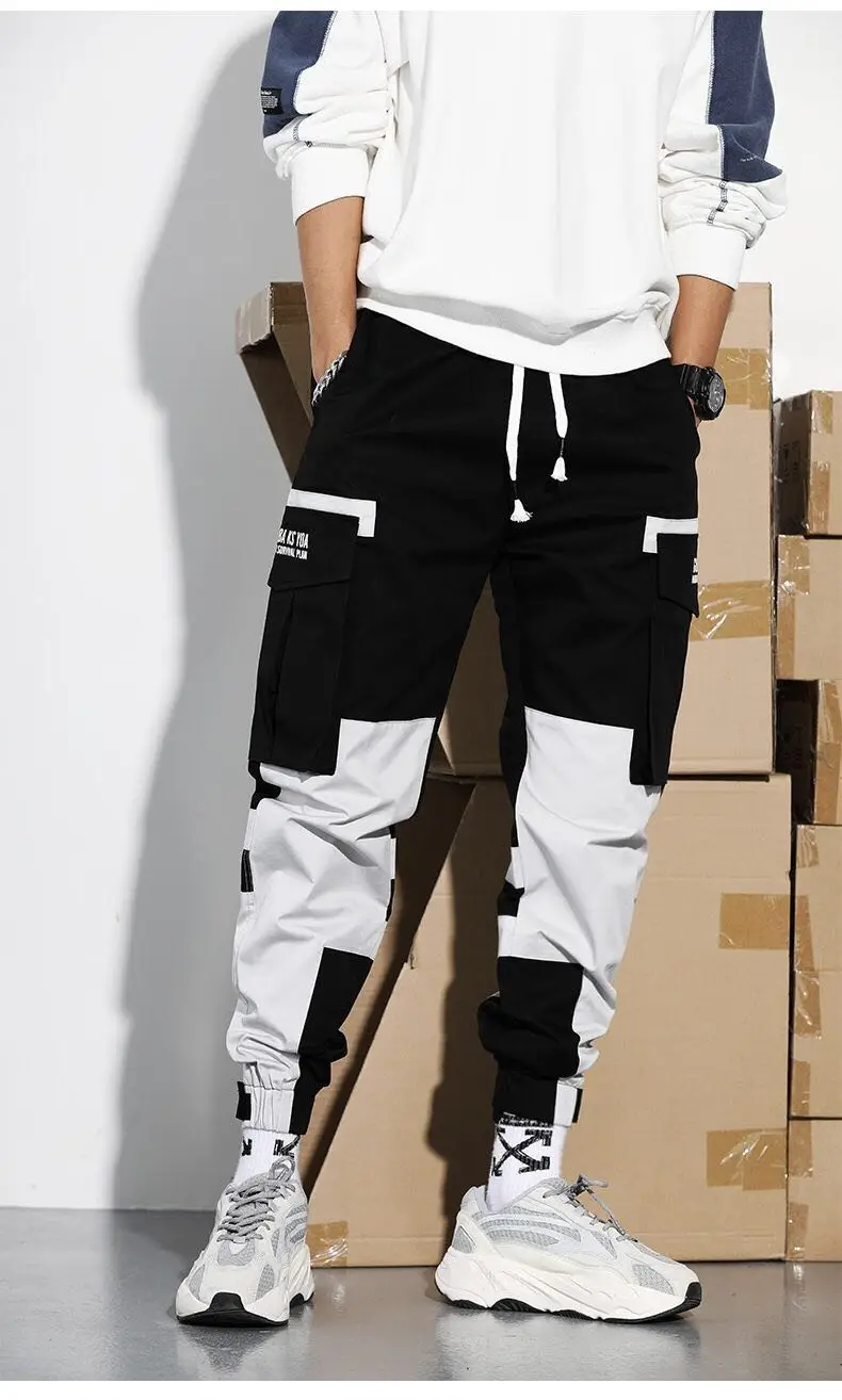 Брюки-карго мужские, черные, спортивные, в стиле Харадзюку