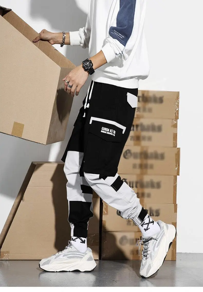 Брюки спортивные мужские, черные, в стиле хип-хоп, весна 2021