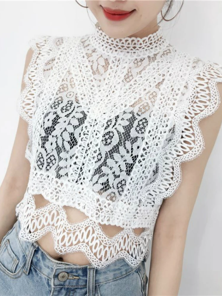 2021 летние кружевные ажурные укороченные топы, женские модные короткие майки, пуловер с кружевом, Женские приталенные элегантные уличные майки