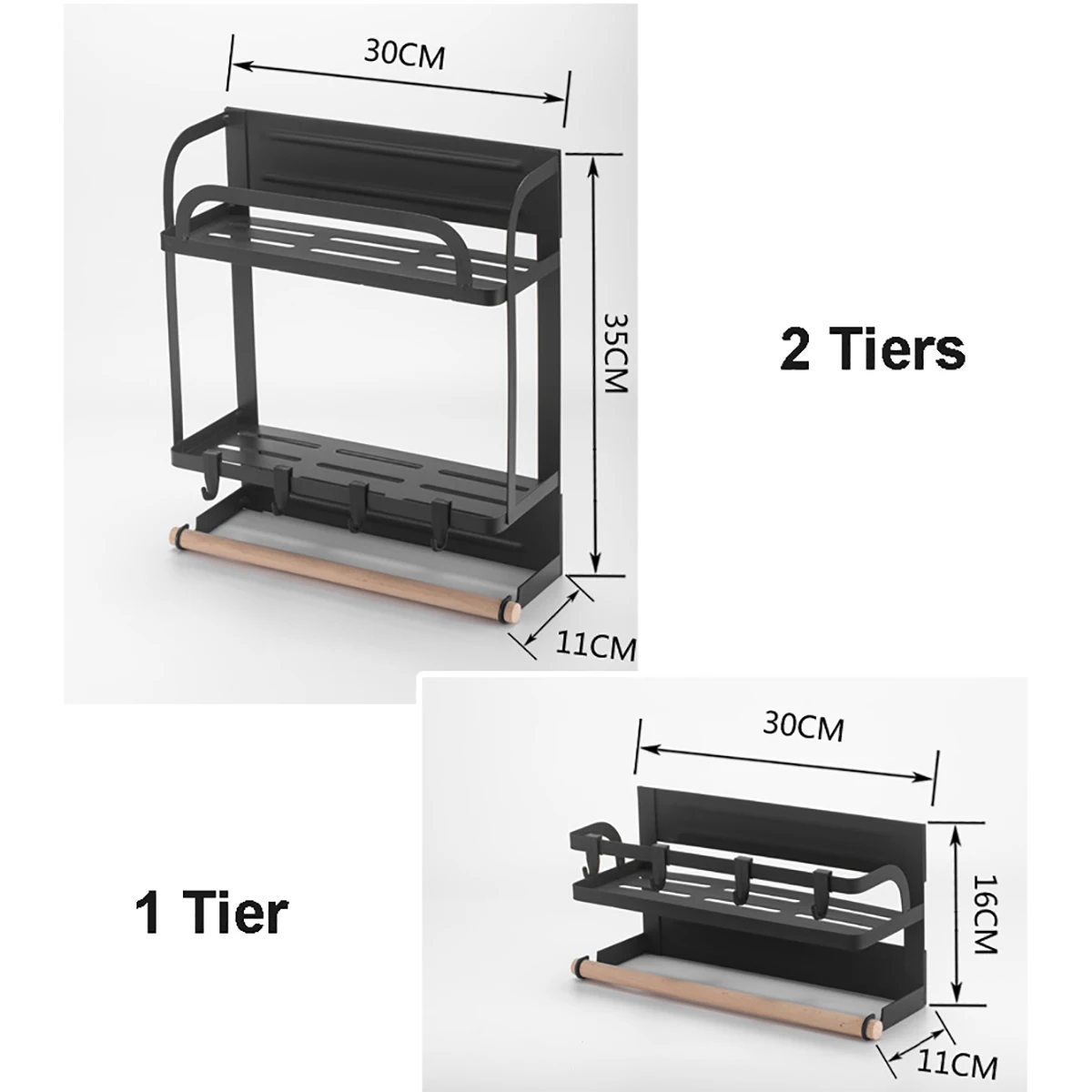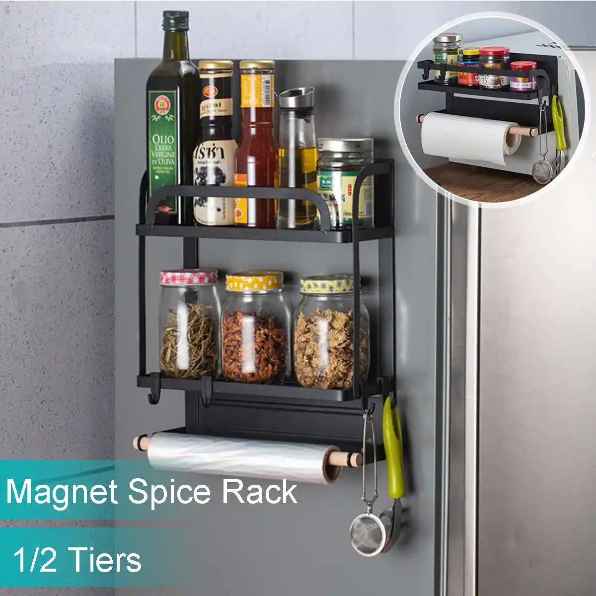 Магнитная стойка для специй, органайзер для холодильника, 1-2 ярусная Магнитная полка для хранения с держателями для бумажных полотенец и 4 крючками, многофункциональная