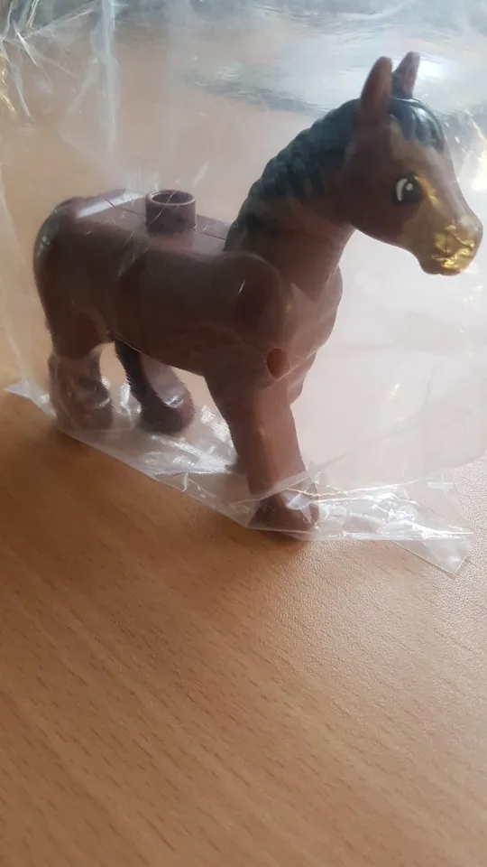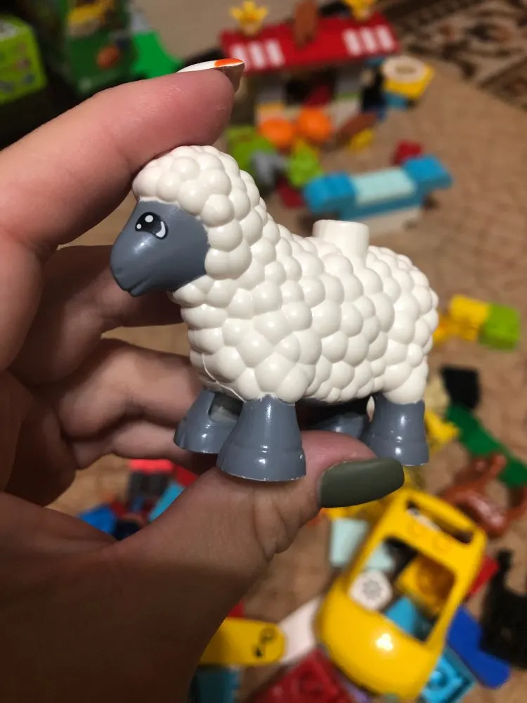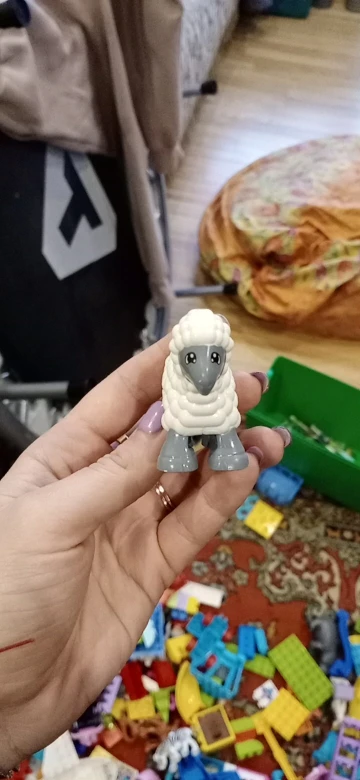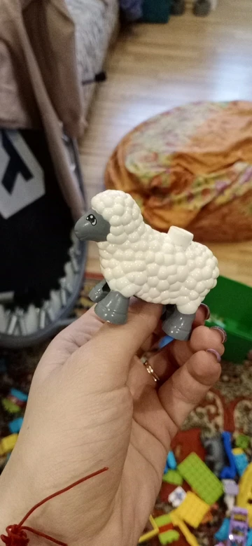 Пока это худшая игрушка, купленная на сайте. Заказали овцу, пришла без упаковки, просто в конверте, чуть криво прокрашена. На спину к ней нормально не крепятся другие фигурки Лего.
