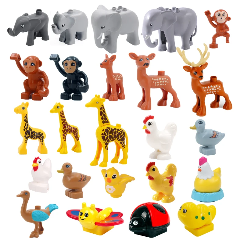 Большие частицы базовые строительные блоки аксессуары животные зоопарк совместимые с Duplos кирпичи динозавр яйца утка Велоцираптор игрушки подарок