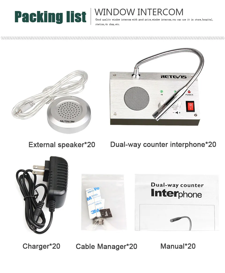 20шт Интерком банк Retevis RT-9908 система Интерком окна двойной способ интерфона окно динамик двусторонний интерком для аптечного банка
