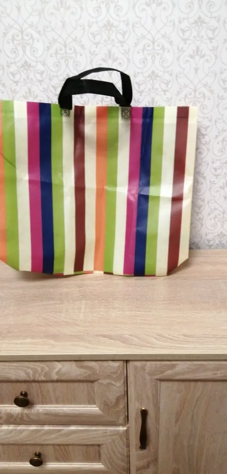 товар прибыл целым.Очень долгая доставка,ну очень долго.материал не понятно и не клеёнка и не бумага,вообщем девочки, для овощей и картошки не подойдёт несмотря на её не маленькие размеры,это скорее на пляж,полотенце тапочки,книгу,ну и какую нибудь косметику.Вообщем что то лёгкое.Как то так ,объективно.Посмотрим ,что скажет жена,когда проснётся.