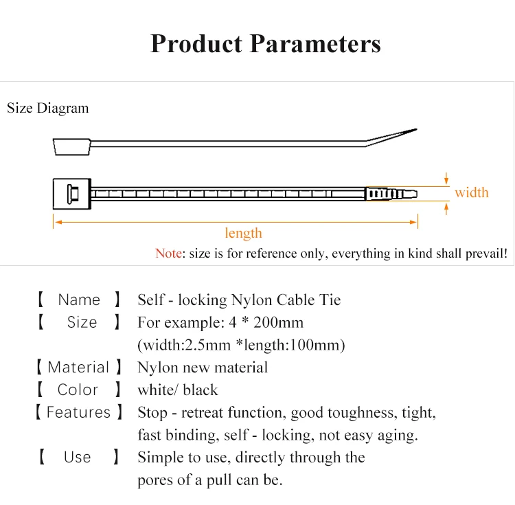 100 шт., самозапирающийся нейлоновый кабель, галстук, белый пластик, крепление для галстука, кольцо, кабель, застежка-молния, ремешок, нейлоновый кабель, галстук, 8x500мм