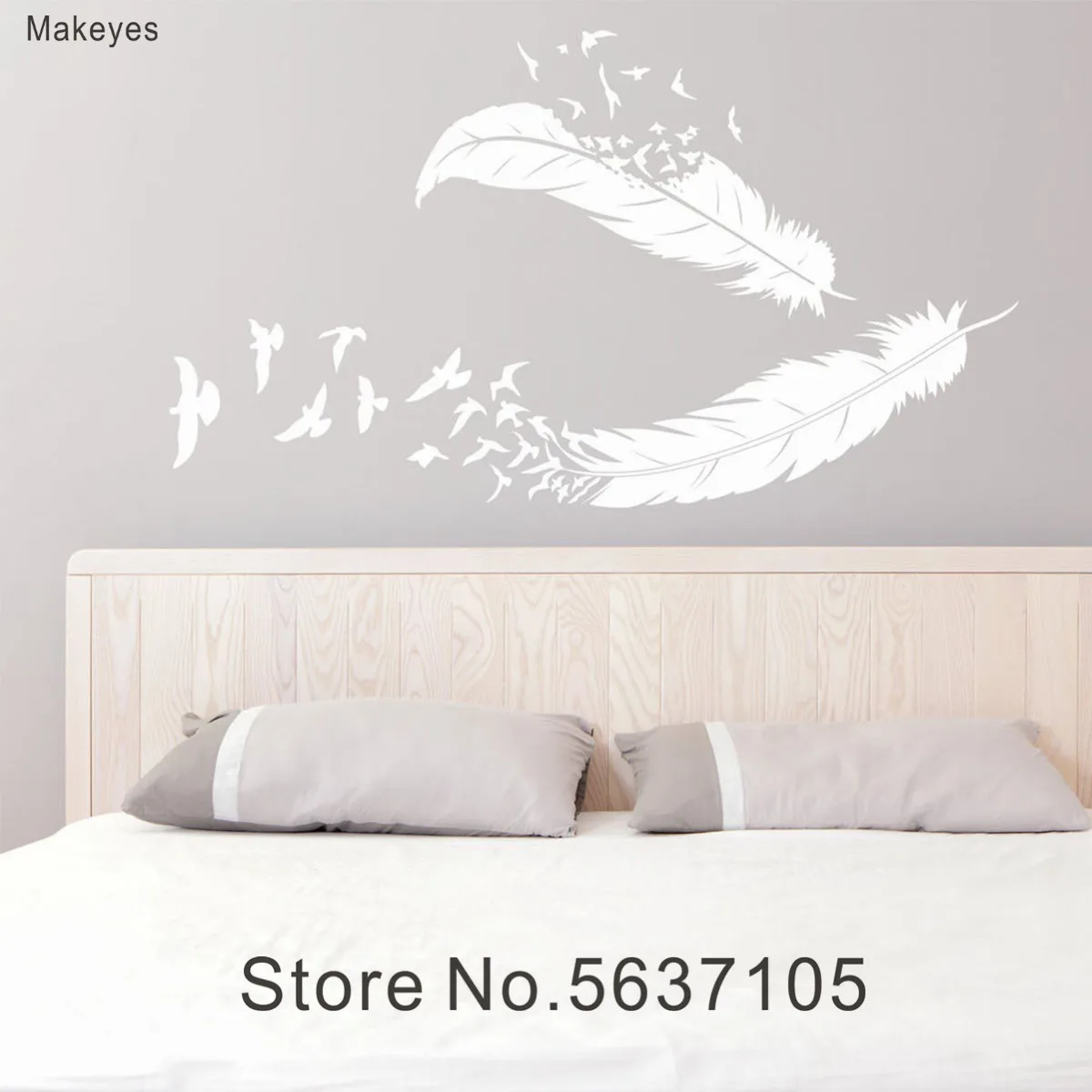 Makeyes наклейки на стену с перьями и птицами, для гостиной, современный декор, виниловые наклейки на стену, летающее перо, настенное искусство, природное украшение Q062