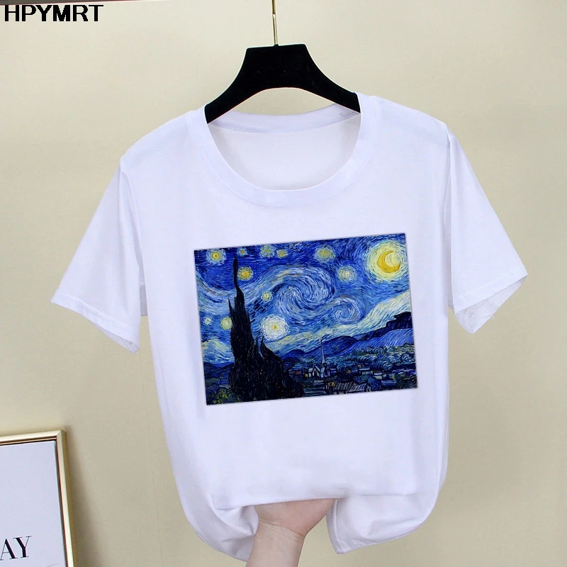 Новая летняя футболка с принтом Ван Гога звездного неба, женская футболка в стиле Харадзюку, Ретро стиль, футболка с рисунком, женские топы с короткими рукавами, одежда