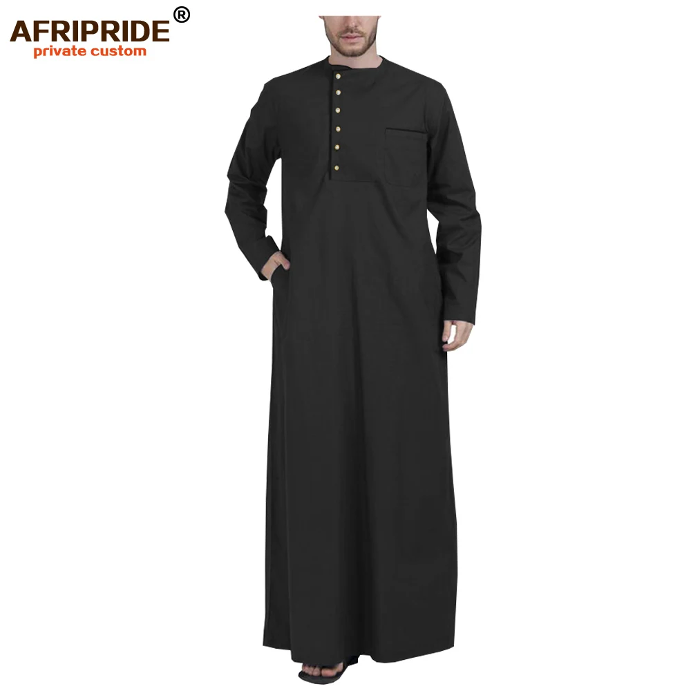 Мусульманская одежда для мужчин Jubba Thobe с длинными рукавами и круглым вырезом, размера плюс, мусульманская одежда, AFRIPRIDE A2014001